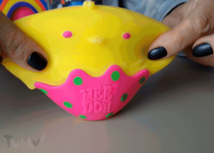 Zabawa bezpiecznym, trwałym gniotkiem pomaga się wyciszyć, ale jednocześnie stanowi ekscytujące doświadczenie sensoryczne. Każdy element został wypełniony nietoksyczną, przypominającą ciasto masą, która zawsze wraca do swojego pierwotnego kształtu.