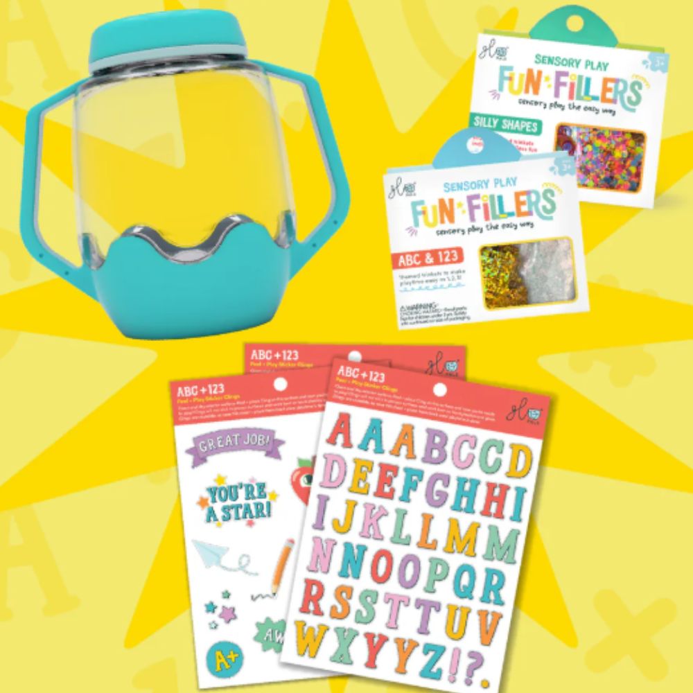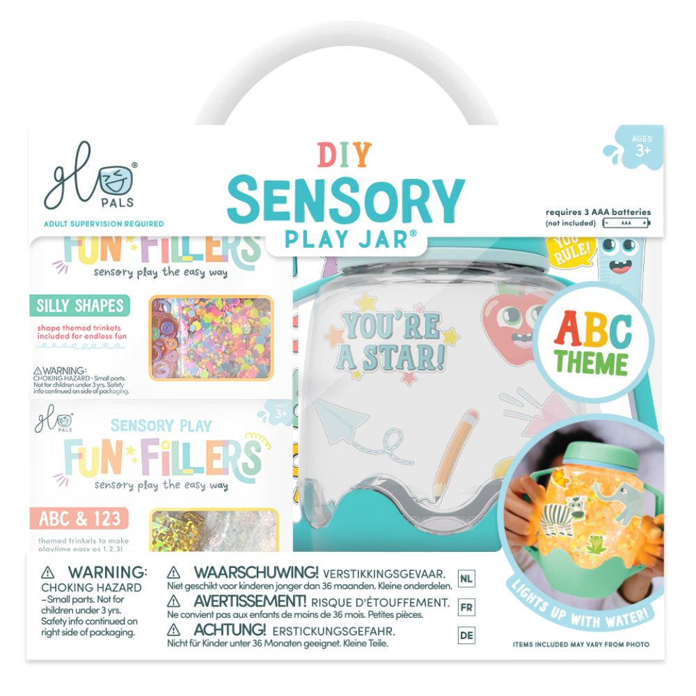 Słoik sensoryczny do napełnienia wodą Glo Pals z akcesoriami w wersji: ABC