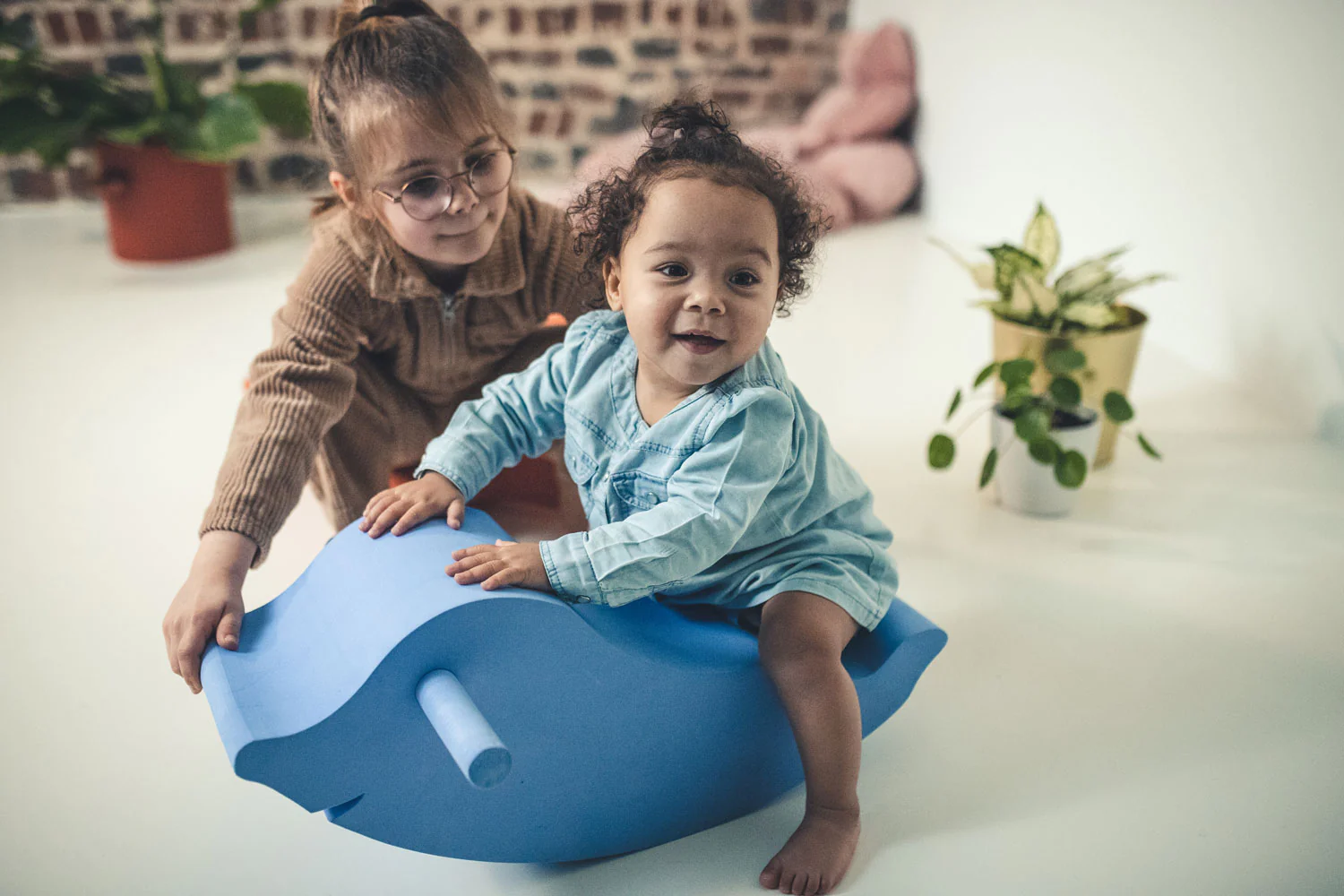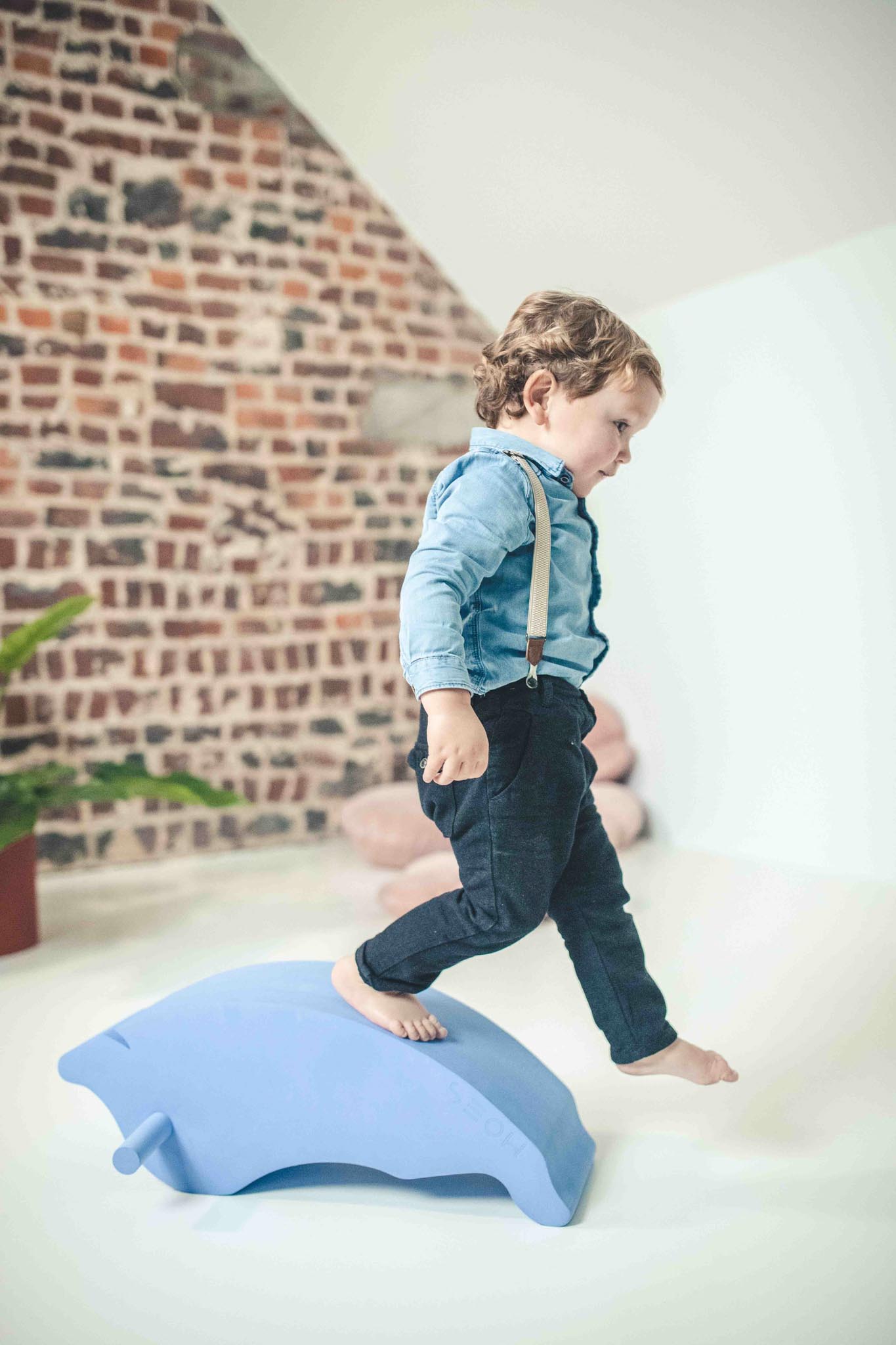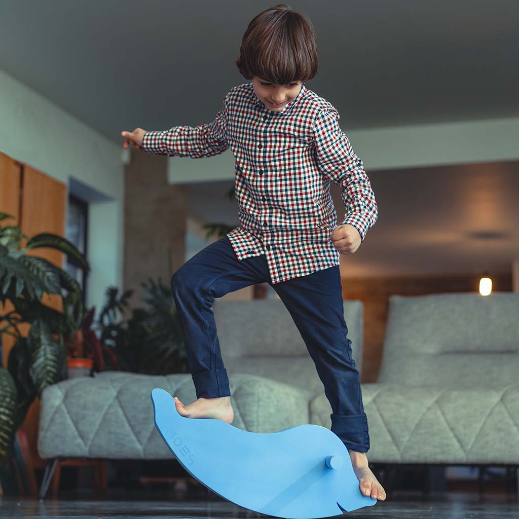 Zabawka delfin pozwala na aktywne spędzenie czasu na wiele sposobów. Zabawka może posłużyć jako zwykły bujak: dziecko siada na delfinie, rączkami przytrzymuje się uchwytów, możemy również podnieść poziom trudności i po odczepieniu uchwytów starać się utrzymać równowagę stając na delfinku. Odwracając go do góry nogami delfin może podłużyć jako element toru do przejścia. Na odwróconym delfinku dziecko może leżeć na brzuszku, a położony bokiem może pełnić rolę siedziska.