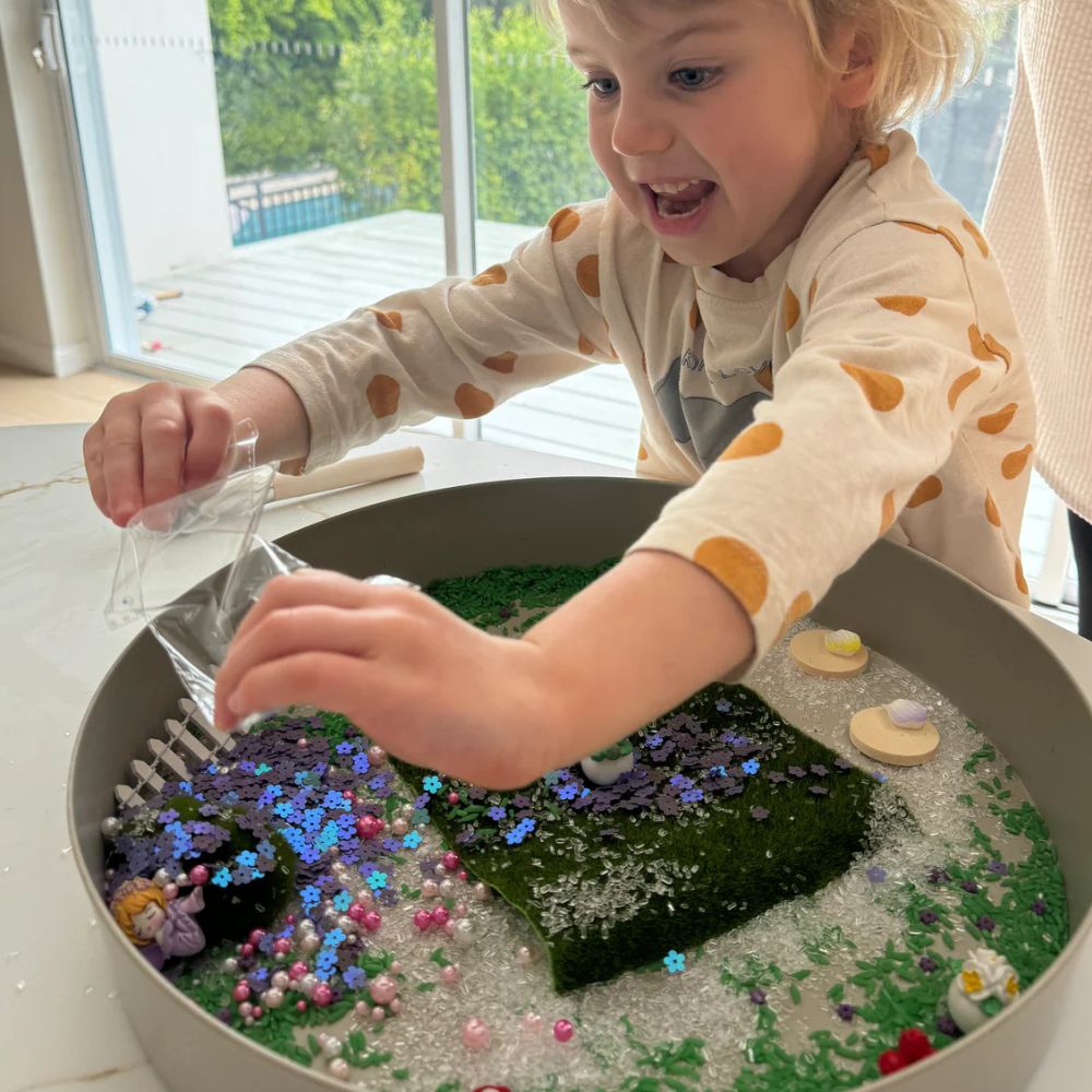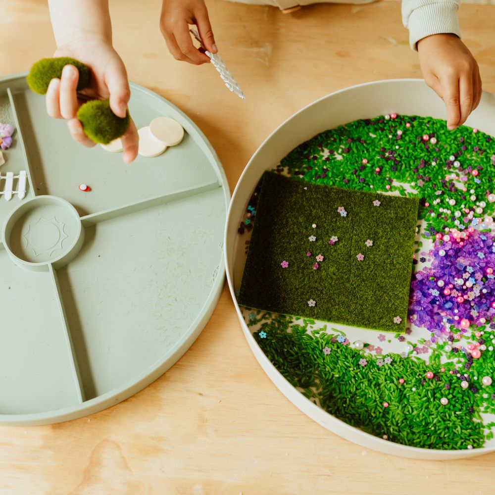 Zestawy idealnie pasują do tacek sensorycznych Play Tray – świetnie sprawdzą się do segregowania elementów, tworzenia scenerii i swobodnej eksploracji. Podczas zabawy dzieci rozwijają umiejętności manualne, uczą się logicznego myślenia, cierpliwości i samodzielnego rozwiązywania problemów.