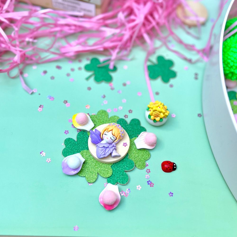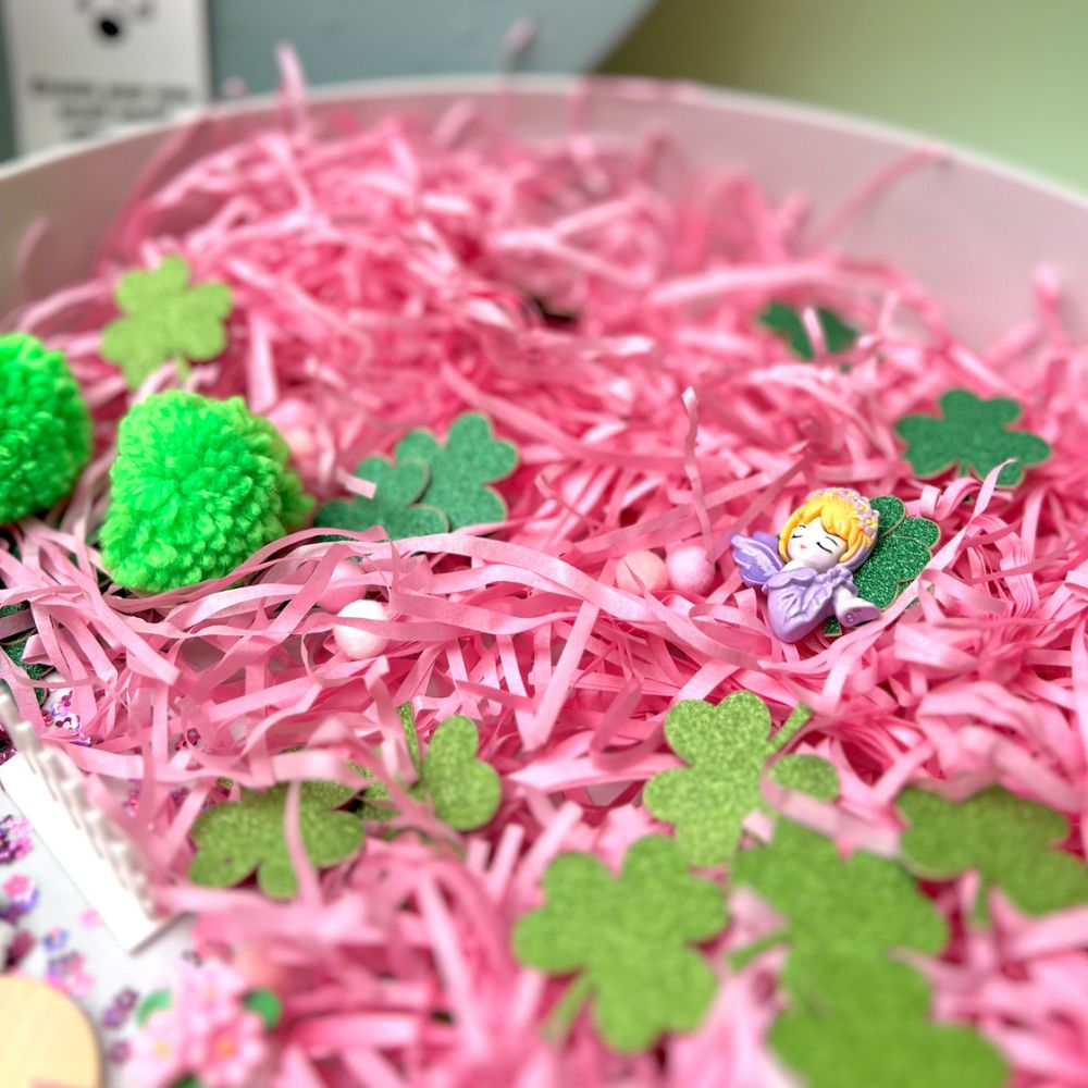 W zestawie Zaczarowany Ogród znajdziesz: biedronki, kamienie milowe, sztuczną trawę, figurkę wróżki, cekiny, konfetti, kwiaty, płot sztachetowy, poszarpany różowy papier