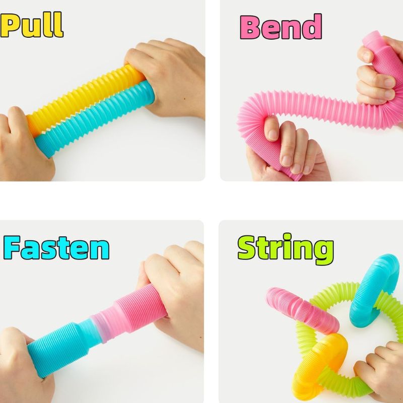 Te sprężyste rurki doskonale sprawdzą się w domu, podróży, a nawet w poczekalni – są lekkie, ciche i poręczne. Zabawa nimi nie tylko zapewnia radość, ale też wspiera rozwój małej motoryki, koordynacji ręka–oko oraz wyobraźni przestrzennej. Świecące kuleczki dodają magicznego efektu i zachęcają do odkrywania – bez baterii i bez ekranów, tylko z pomocą małych rączek.