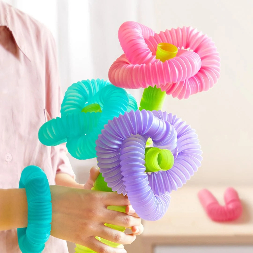 Szukasz zabawki, która zachwyci dziecko zarówno w dzień, jak i po zmroku? Mideer Glow Pop Tube to zestaw kolorowych, elastycznych rurek z kulkami świecącymi w ciemności, które można wyginać, skręcać, łączyć i tworzyć z nich przeróżne kształty – od bransoletek, przez tęcze, po tunele! To doskonały wybór na prezent dla 3-latka, który kocha sensoryczne, kreatywne zabawy.