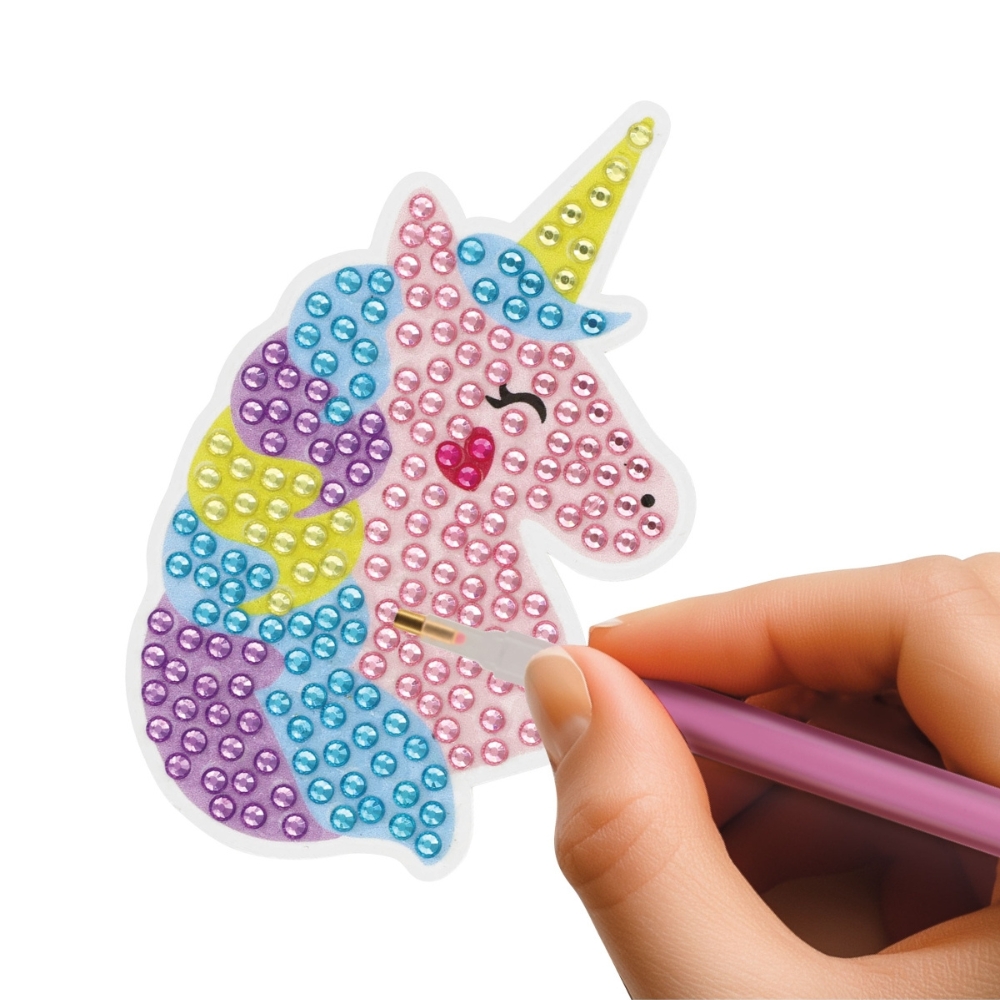 Mali artyści ozdabiają naklejki kolorowymi diamencikami, wypełniając specjalnie przygotowane pola za pomocą dołączonego rysika. Gotowe dekoracje pięknie prezentują się na zeszytach, piórnikach, kartkach okolicznościowych czy prezentach, nadając im modny i personalizowany charakter. To świetna zabawa rozwijająca zdolności manualne, koncentrację oraz cierpliwość – a przy tym idealna alternatywa dla czasu spędzanego przed ekranem.
