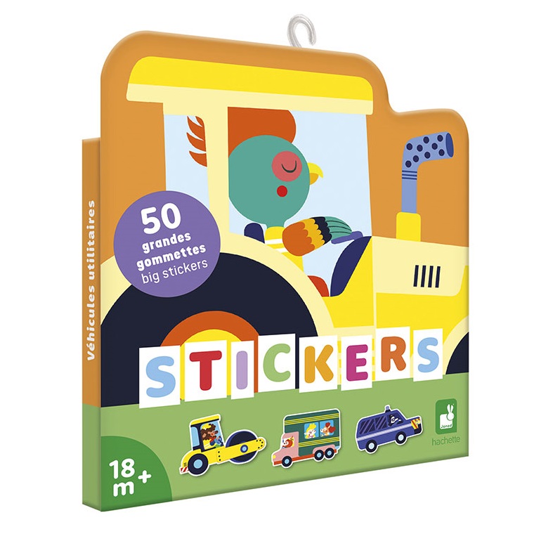 Cechy dużych naklejek wielorazowych 18m+ Janod - Pojazdy 50 szt.: