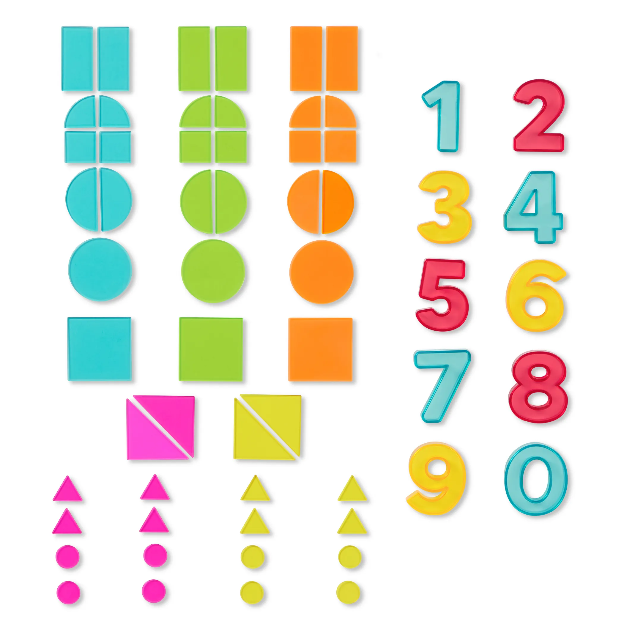 Dzięki aż 5 kolorom światła i 2 poziomom jasności dziecko może eksperymentować z barwami, nakładaniem kształtów i tworzeniem własnych kompozycji. Przezroczyste elementy geometryczne i cyfry 3D pomagają w naturalny sposób poznawać liczby, kształty i kolory, a zmazywalne pisaki pozwalają rysować bez końca – bez obaw o bałagan.