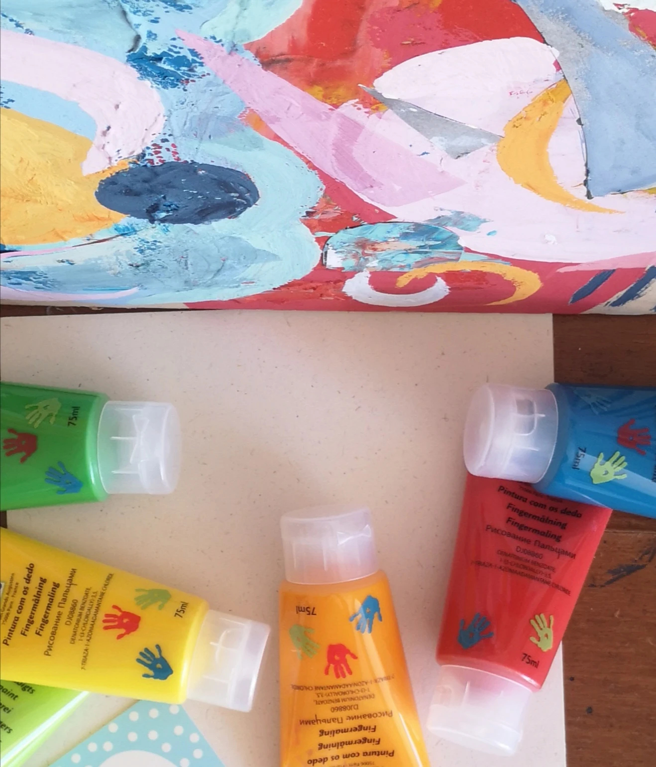 Idealny zestaw dla małych artystów. Zestaw składa się z 6 tubek z farbami w tęczowych barwach. Całość zapakowana jest w kartonowe pudełko. Malowanie palcami to świetna zabawa dla całej rodziny. Weź do ręki ulubiony kolor, nałóż trochę farby na papier, umocz palec i do dzieła! Testowane dermatologicznie.