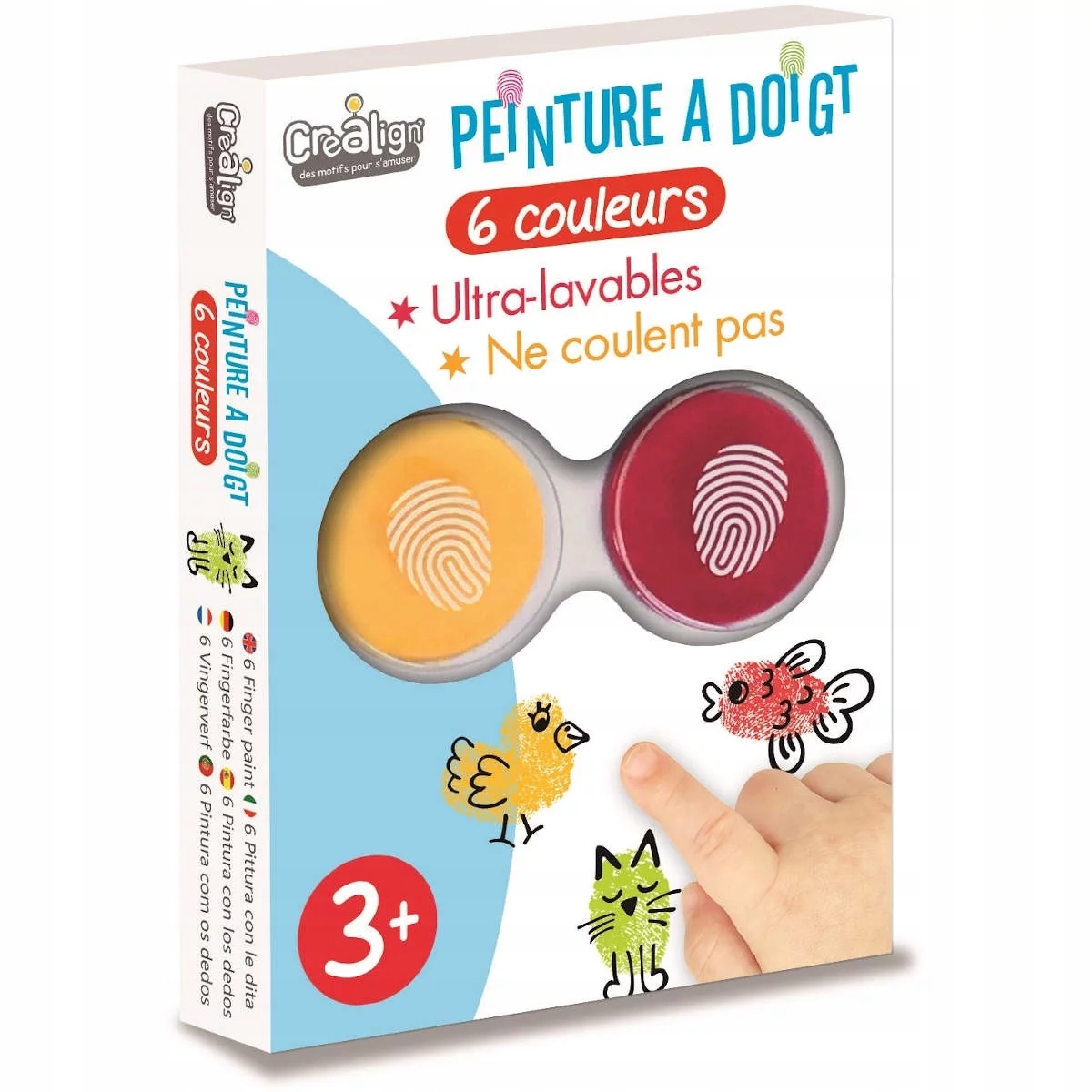 Farby do malowania palcami dla 3-latka marki Crea Lign to artystyczny zestaw, na który składa się 6 kolorów zmywalnych farb. Produkt jest bezpieczny dla skóry dziecka i można go łatwo zmyć za pomocą wody i mydła. W opakowaniu znajduje się paleta z sześcioma kolorami farb: niebieskim, zielonym, czerwonym, żółtym, fioletowym i bordowym. Kolorowe farby marki Crea Lign zapewnią dziecku wiele godzin dobrej zabawki i świetnie sprawdzą się jako prezent dla dzieci od 3 roku życia.