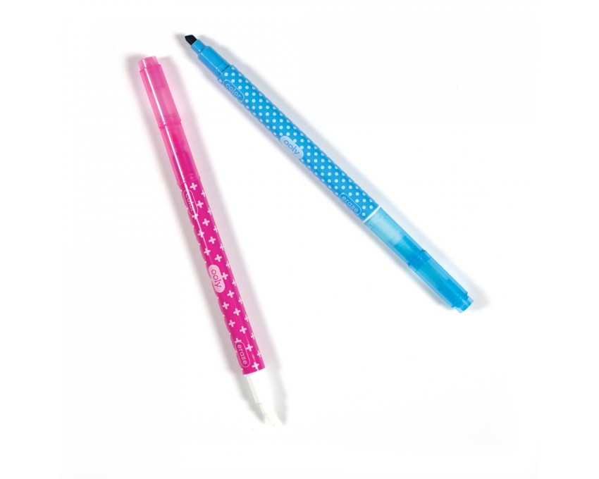Rysuj, koloruj i ... wymazuj! Dzięki Bezbłędnym Flamastrom możesz naprawiać błędy, które popełniasz. Wycieralny flamaster ma dwie końcówki, jedną kolorową do kolorowania, rysowania, zaznaczania i drugą białą do wycierania. Możesz użyć białej końcówki, aby wymazać kolor tworząc zabawne i kreatywne projekty. Zestaw zawiera 12 flamastrów.