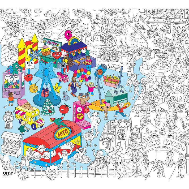 Gigantyczna kolorowanka OMY w wersji: Park rozrywki 100x70 cm