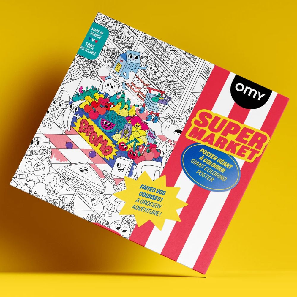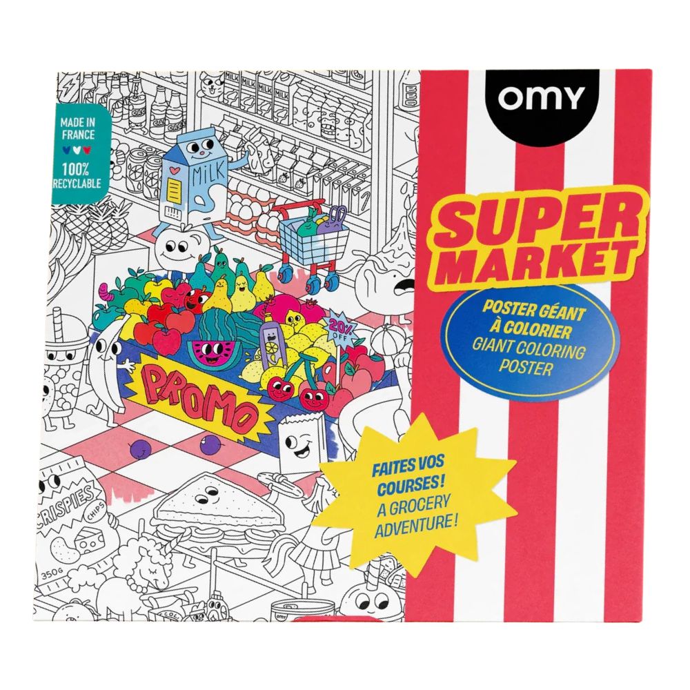 Witamy w szalonym świecie OMY, gdzie zakupy stają się przygodą! Plakat Super Market to ogromna plansza do kolorowania, która przeniesie dzieci i dorosłych do zabawnego supermarketu pełnego zaskakujących scenek i komicznych sytuacji. To nie tylko kolorowanka, ale też odkrywcza podróż po półkach pełnych fantazji i śmiechu.