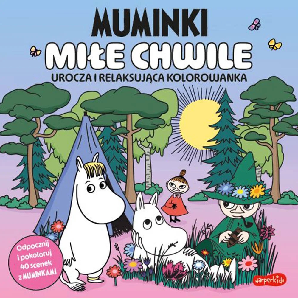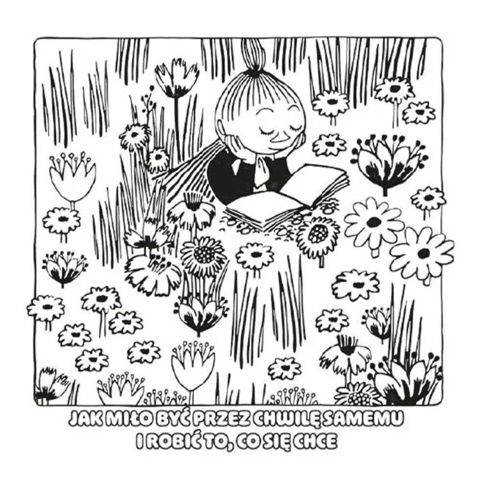 Wybrane strony uzupełniono krótkimi, nastrojowymi tekstami, które oddają klimat opowieści autorstwa Tove Jansson i zachęcają do chwili uważności. Kolorowanka świetnie sprawdzi się jako relaks po ciężkim dniu, ćwiczenie koncentracji i sposób na twórczy odpoczynek bez ekranów. Pokolorowane ilustracje można wyciąć, oprawić, wkleić do scrapbooka lub podarować bliskiej osobie.