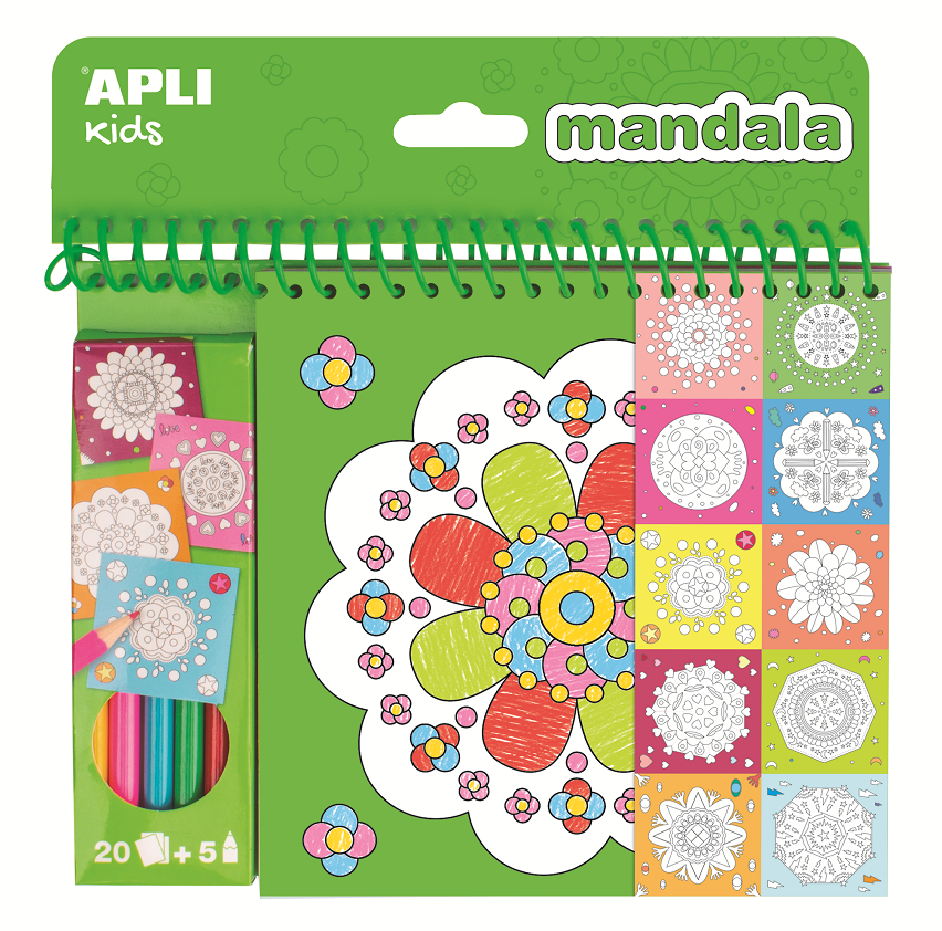 Kolorowanka zawiera 20 stron z różnymi wzorami mandali oraz pudełko z 5 kredkami, dzięki czemu możesz zabrać ją ze sobą wszędzie. Idealnie sprawdzi się w domu jak i w podróży. Interesująca grafika zachęci malucha do malowania.