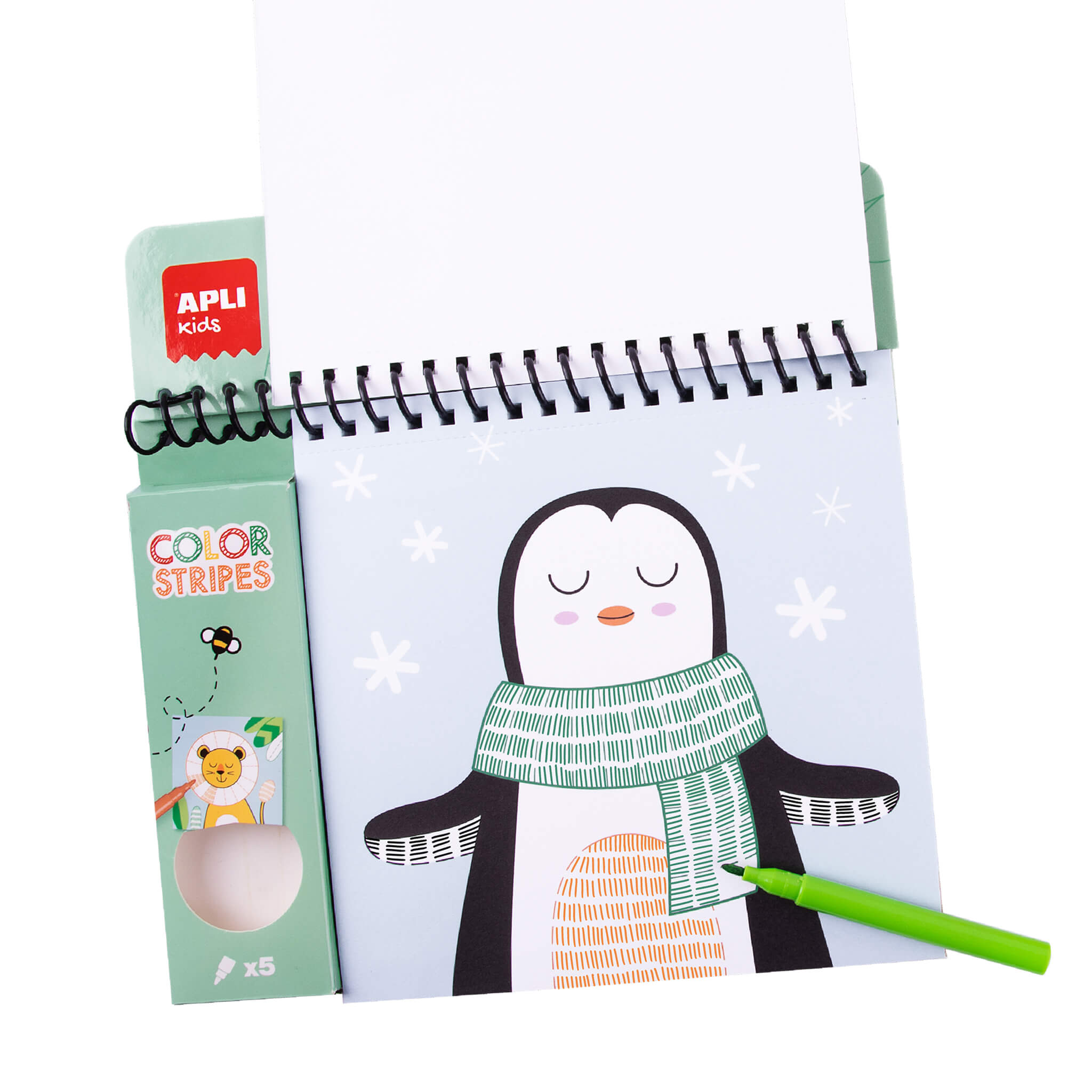 Wyjątkowa kolorowanka Apli Kids do malowania przy użyciu wzoru pasków, imitujących fakturę sierści i ubranek zwierzątek. Zawiera aż 24 strony z 6 różnymi wzorami. Do zestawu dołączono 5 markerów. Spiralna oprawa sprawia, że kolorowanka świetnie sprawdzi się w podróży, restauracji czy podczas wizyty u dziadków. Flamastry umieszczono w małym pudełku, co pozwala na wygodne zabranie ze sobą zestawu wszędzie i zapobiega ich gubieniu.