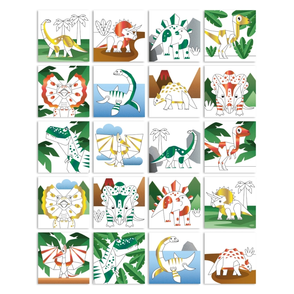 Kolorowanka z motywem dinozaurów to idealna propozycja dla małych odkrywców fascynujących się światem prehistorycznych gadów! Metaliczne elementy na ilustracjach nadają rysunkom wyjątkowego efektu, który zachwyci każde dziecko i sprawi, że kolorowanie stanie się jeszcze bardziej ekscytujące.