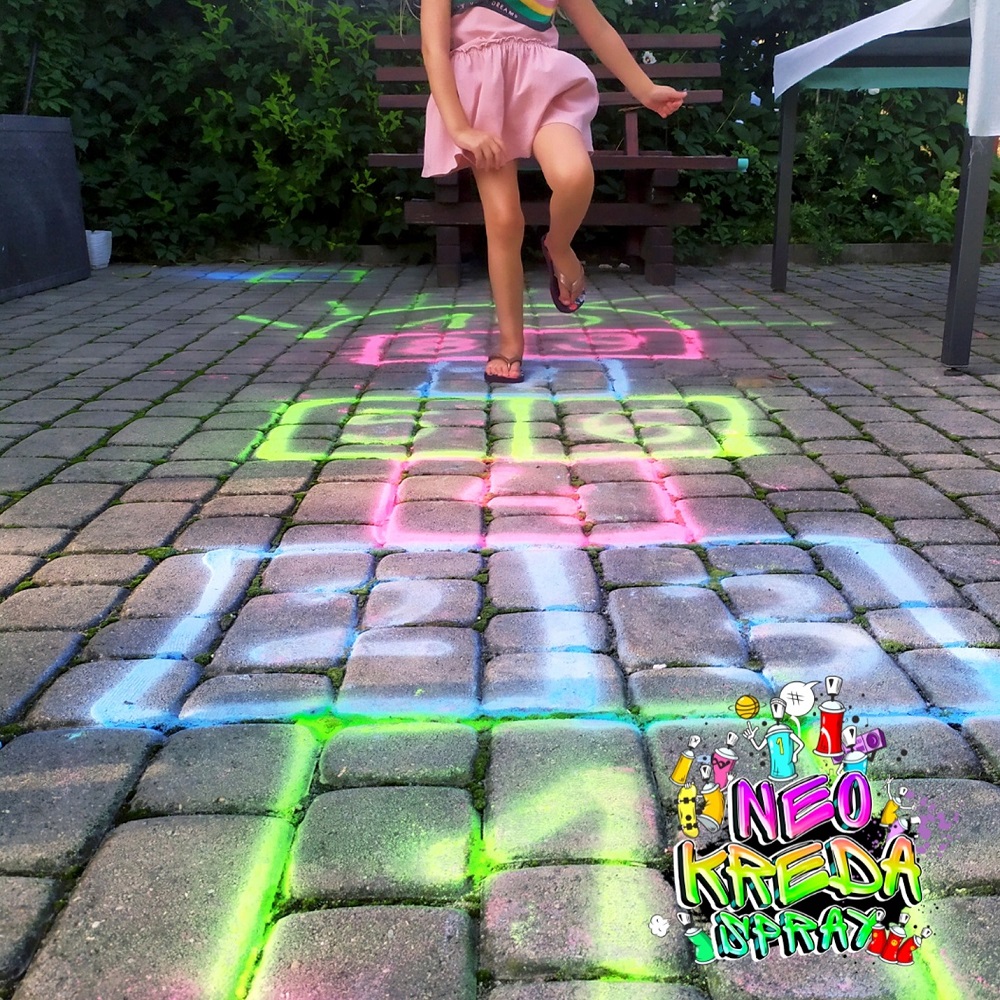 Kreda w sprayu znakomicie nadaje się do kreatywnych działań. Pomalujesz nią takie powierzchnie jak szkło, asfalt, drewno, kamienie czy trawa. NEO KREDA daje taki sam efekt jak farba w sprayu, ale w odróżnieniu od niej, jest zmywalna wodą. Należy wziąć pod uwagę, że wykonane nią malunki na zewnątrz pomieszczeń, zostaną także usunięte wraz z deszczem lub innym opadem atmosferycznym.
