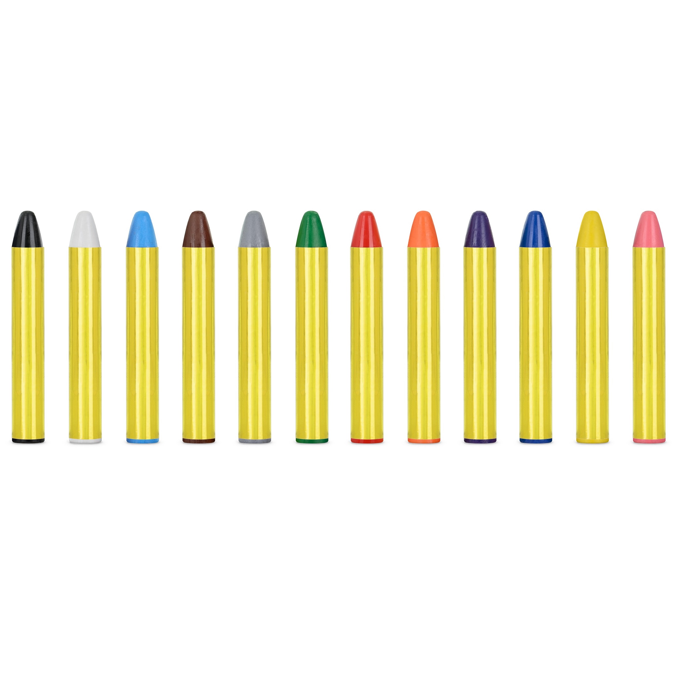 Zestaw 12 miękkich kredek do malowania twarzy, świetnie sprawdzi się na wszelkiego rodzaju przyjęciach, a także dla zabicia nudy np. podczas deszczowych dni. Zestaw zawiera 12 sztuk w kolorze: czarnym, białym, czerwonym, żółtym, ciemnozielonym, niebieskim, jasnoniebieskim pomarańczowym, różowym, fioletowym, brązowym, szarym.