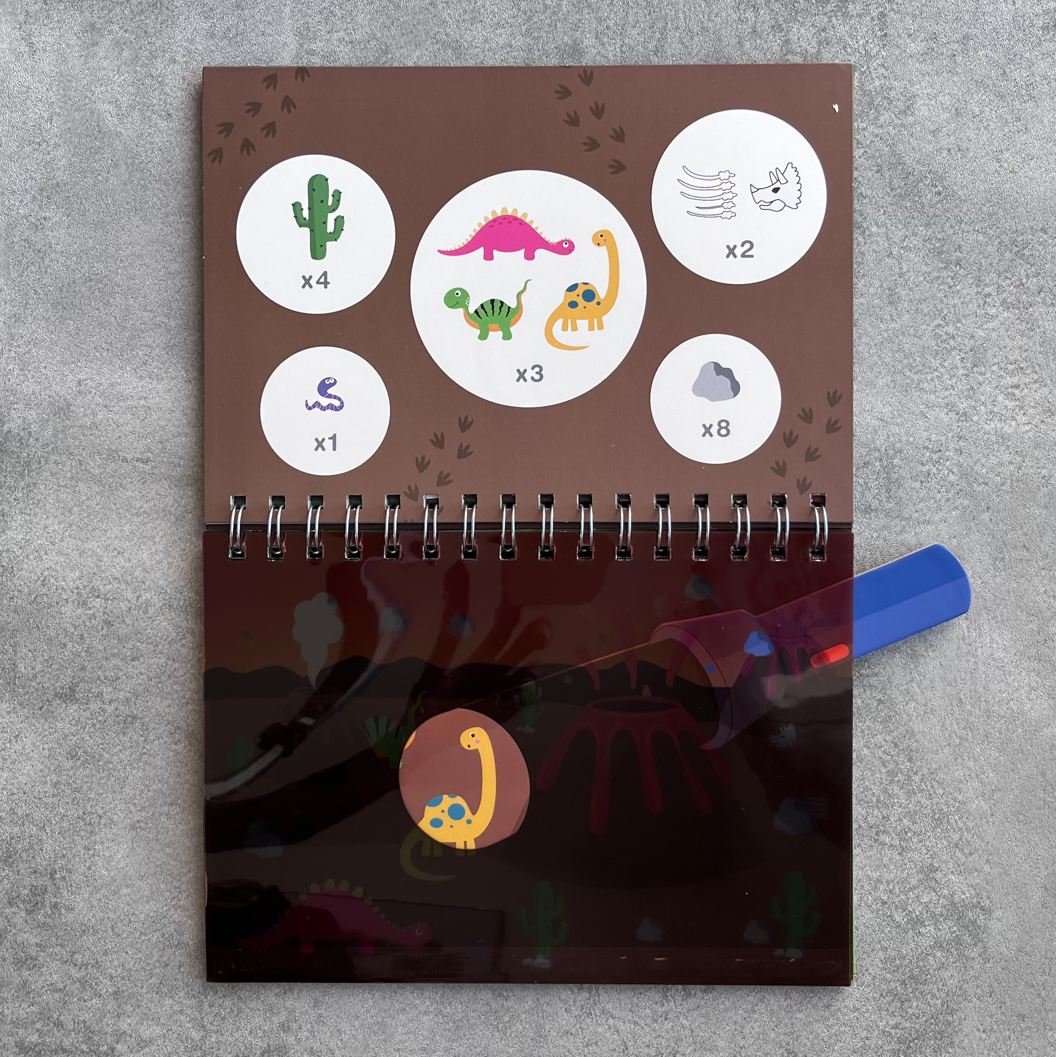 Odkryj tajemnice dinozaurów z zestawem Look&Find! Książeczka zawiera 6 wyjątkowych plansz na spirali, które przenoszą Twoje dziecko w fascynujący świat prehistorycznych olbrzymów. Każda strona planszy ujawnia przed maluchem tajemnice dinozaurów, a kolorowa grafika rozbudza wyobraźnię i zachęca do niekończącej się zabawy.