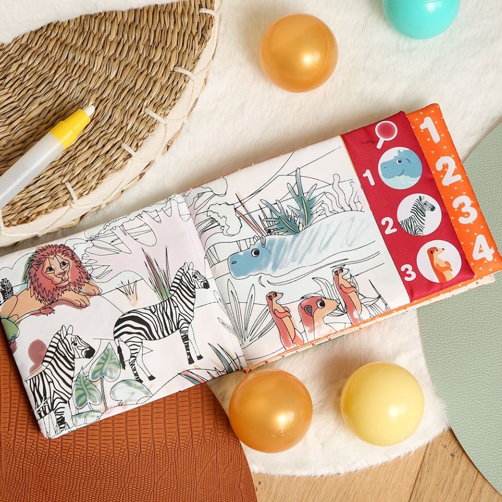 Podaruj swojemu maluszkowi pierwszą edukacyjną przygodę w świecie zwierząt! Ta miękka książeczka do kolorowania wodą to idealna zabawka sensoryczna, która łączy naukę i zabawę. Wystarczy napełnić dołączony pisak wodą, aby ilustracje dżungli zaczęły magicznie nabierać kolorów – bez bałaganu i bez plam!