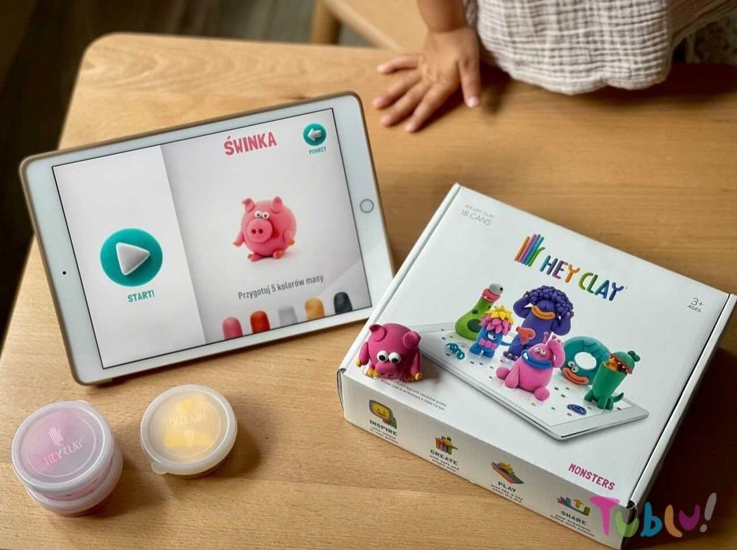 Hey Clay to mark, która tworzy zestawy do kreatywnej zabawy dla dzieci. Tematy pracy to zwykle zwierzaki i inne postaci lubiane przez najmłodszych. Materiałem służącym do zabaw twórczych jest masa plastyczna o fantastycznych, wyrazistych kolorach. Pozwala ona na tworzenie trójwymiarowych figurek o fantazyjnych kształtach, które schną w 24 godziny. Maluch może skorzystać ze wskazówek lub zrealizować własny projekt. Do każdego modelu przewidziana jest aplikacja, która przeprowadzi dziecko przez cały proces tworzenia konkretnej postaci.