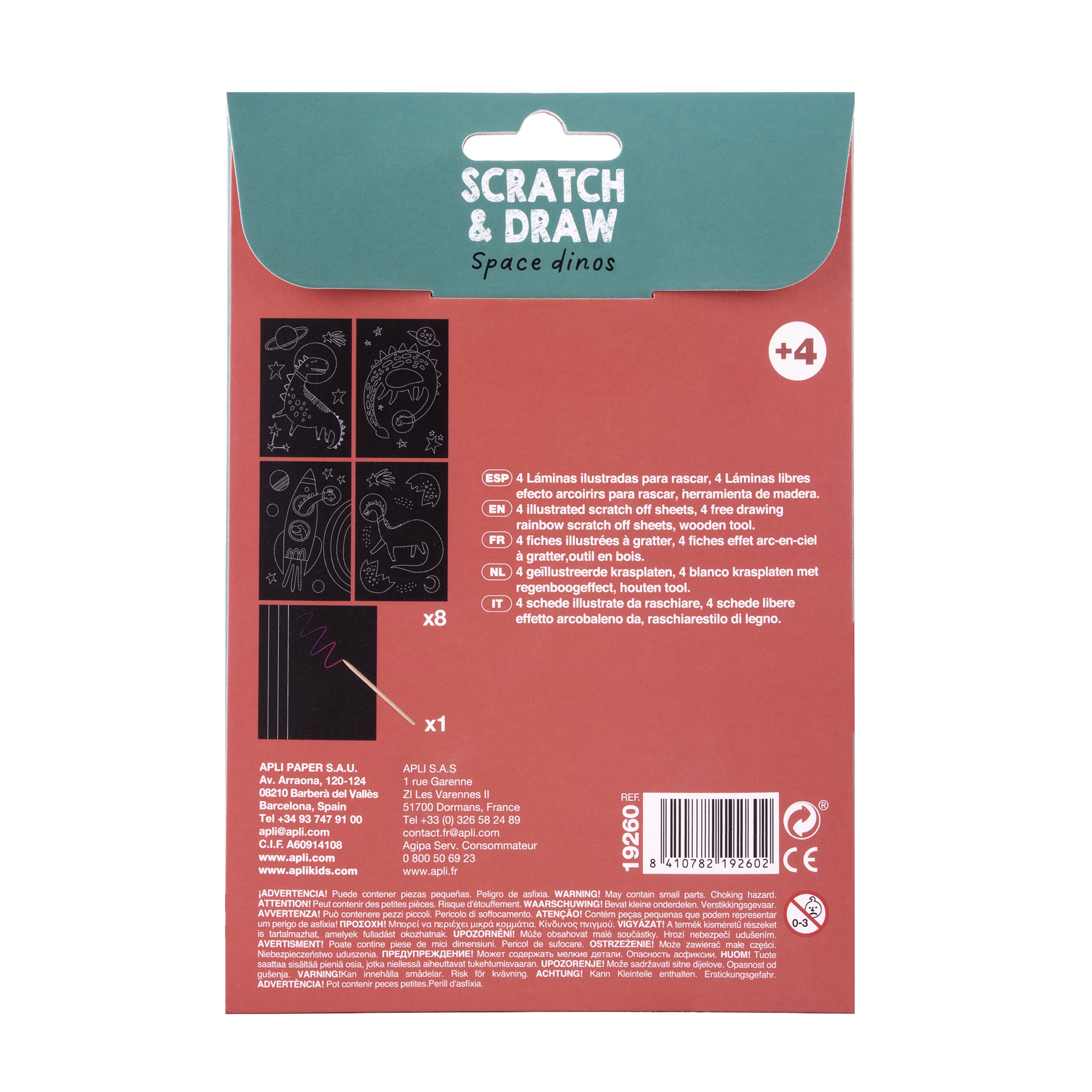 Odkryj tajemnicę ukrytą pod czarną powierzchnią razem z zestawem wydrapywanek od marki Apli Kids! Składa się z 8 stron, w tym 4 z fascynującymi rysunkami dinozaurów oraz 4 arkusze do własnej kreacji. Zestaw wydrapywanek rozwinie zdolności grafomotorycznych oraz kreatywności u najmłodszych, a także pobudzi wyobraźnię. Kompaktowy rozmiar sprawia, że są one idealnym towarzyszem podróży. Zapewnią doskonałą rozrywkę w samolocie, samochodzie, poczekalni - wszędzie tam gdzie wieje nudą!