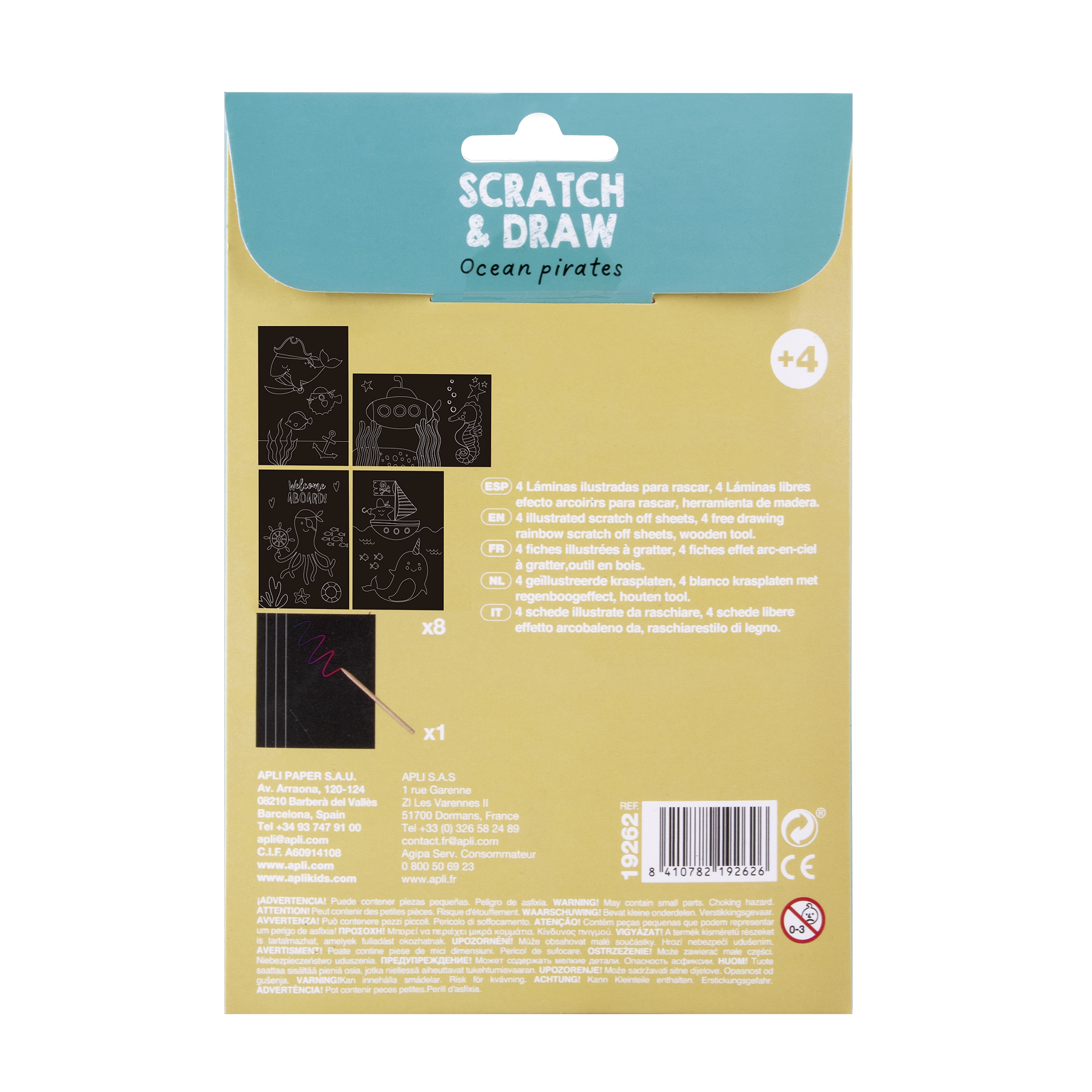 Odkryj tajemnicę ukrytą pod czarną powierzchnią razem z zestawem wydrapywanek od marki Apli Kids! Składa się z 8 stron, w tym 4 z fascynującymi rysunkami o morskiej tematyce oraz 4 arkusze do własnej kreacji. Zestaw wydrapywanek rozwinie zdolności grafomotorycznych oraz kreatywności u najmłodszych, a także pobudzi wyobraźnię. Kompaktowy rozmiar sprawia, że są one idealnym towarzyszem podróży. Zapewnią doskonałą rozrywkę w samolocie, samochodzie, poczekalni - wszędzie tam gdzie wieje nudą!