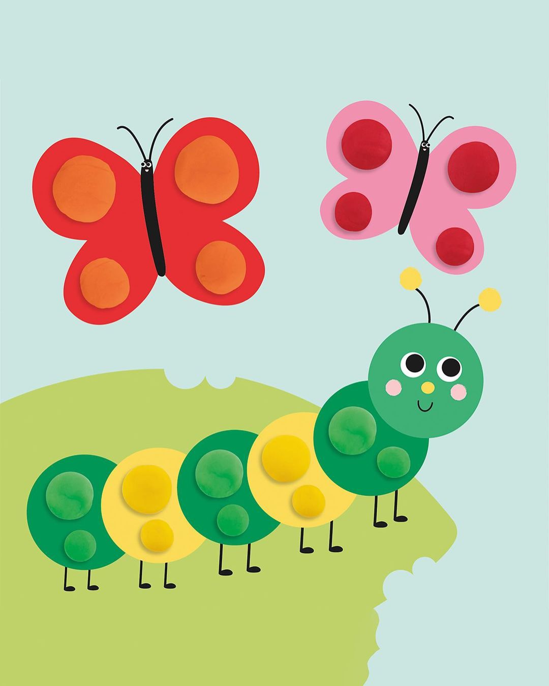 Maluch ma za zadanie ozdobić plasteliną obrazki ze zwierzątkami. Arkusze posiadają białe pola z kolorowymi kropkami, które są wskazówką dla dziecka jakim kolorem plasteliny je wypełnić. W zestawie znajduje się 6 laminowanych obrazków oraz 6 opakowań z plasteliną.