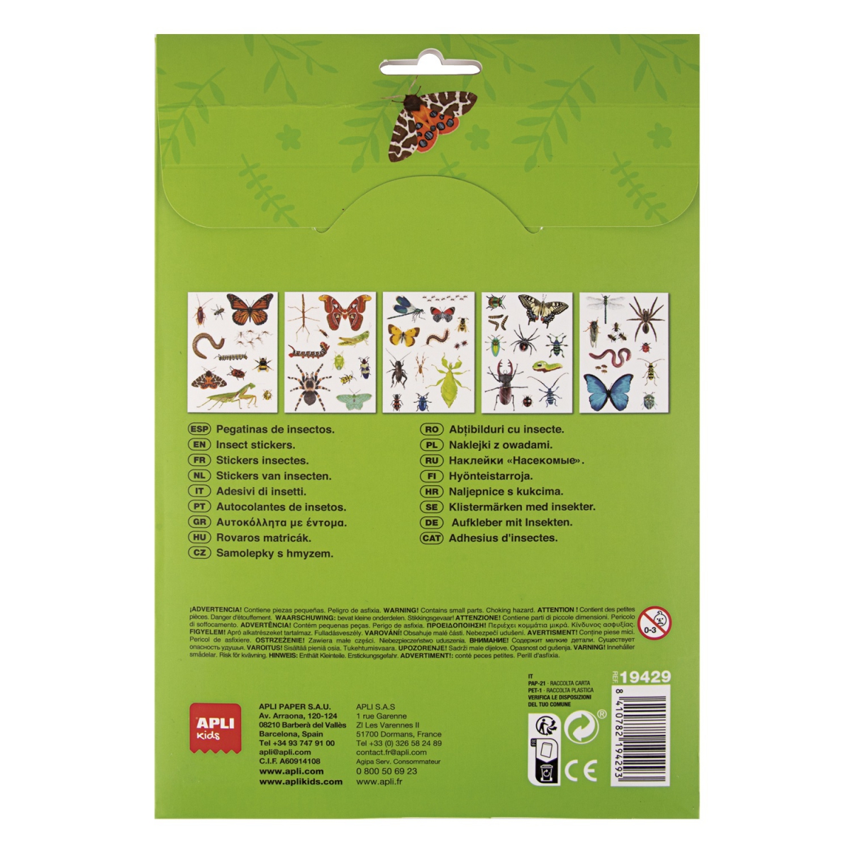 Zestaw 5 arkuszy naklejek Apli Kids to doskonała propozycja dla dzieci, które uwielbiają wyklejanki ze zwierzątkami. 50 naklejek o tematyce małych insektów pozwoli na tworzenie własnych kompozycji, ozdabianie oraz eksperymentowanie z różnymi aranżacjami. W zestawie znajdziesz szeroki wybór zwierząt: pająki, motyle, mrówki, biedronki, ważki, pszczoły, osy i wiele, wiele innych gatunków najbardziej zróżnicowanej grupy zwierząt. Co ważne, naklejki można przyklejać i odklejać wielokrotnie, co pozwala na tworzenie nowych obrazków. Duża różnorodność gatunków zwierząt na naklejkach wzbudzi zachwyt i zainteresowanie u każdego dziecka.