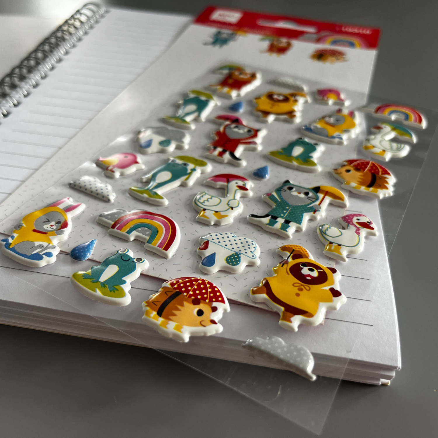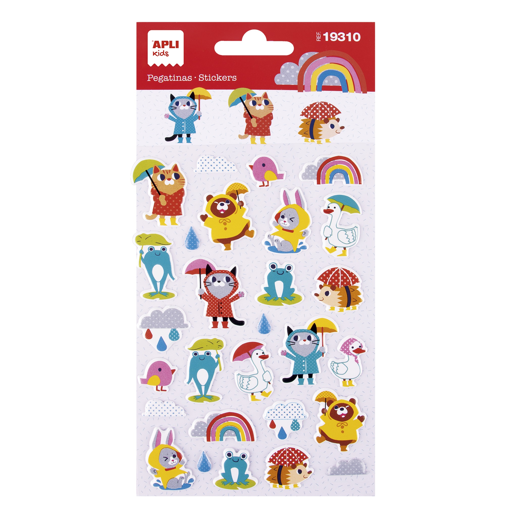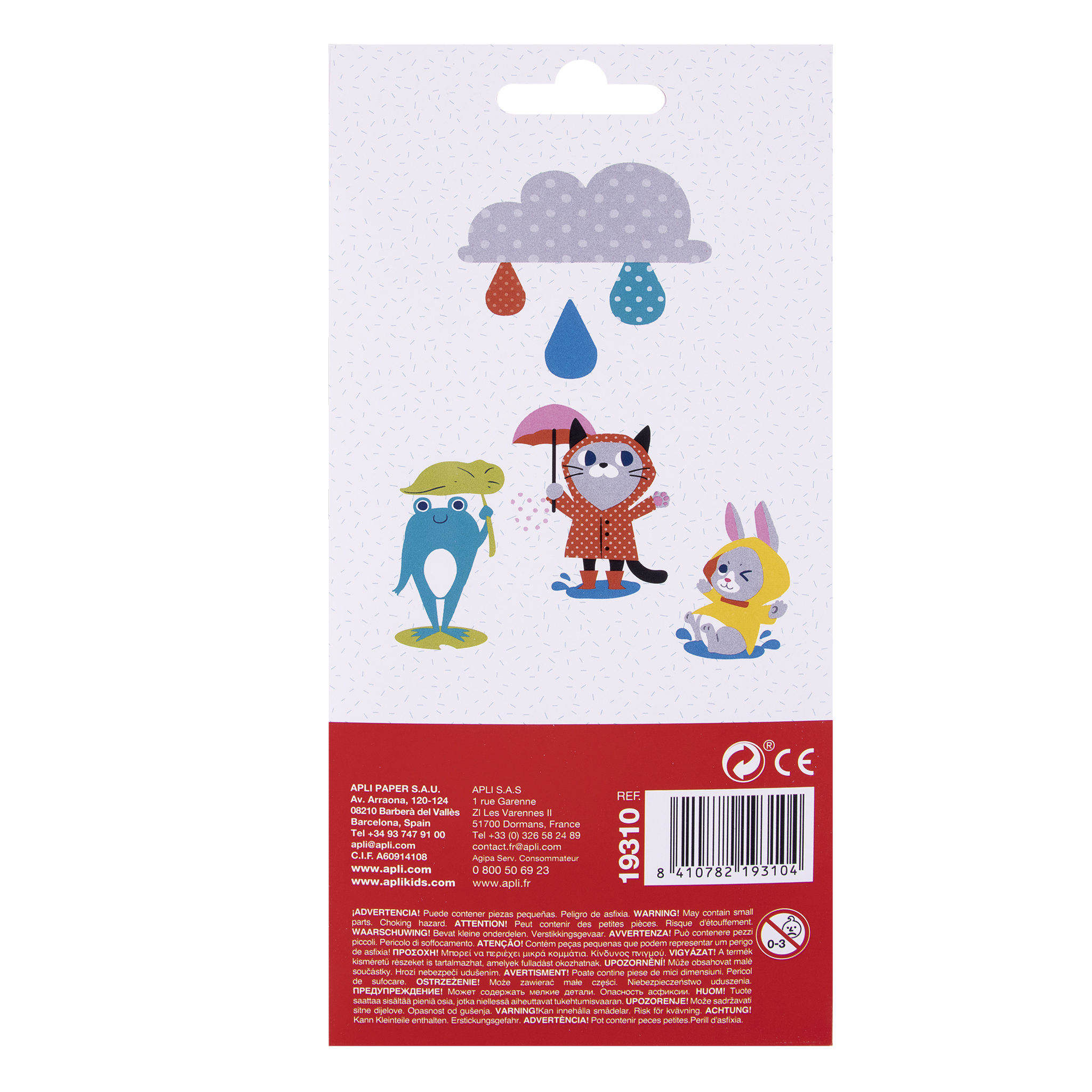 Zestaw naklejek marki Apli Kids ucieszy każdego maluszka. Dzieci wprost uwielbiają naklejać! Zestaw składa się z 28 wypukłych naklejek jednorazowego użytku z deszczowym motywem. Można nimi ozdobić szkolny zeszyt, prace plastyczną, album ze zdjęciami, laurkę, zaproszenie na urodziny, pamiętnik itp. Podczas zabawy dziecko rozwinie kreatywność, wyobraźnię, koordynację ręka-oko, zdolności narracyjne, pobudzi kreatywność i pomysłowość.