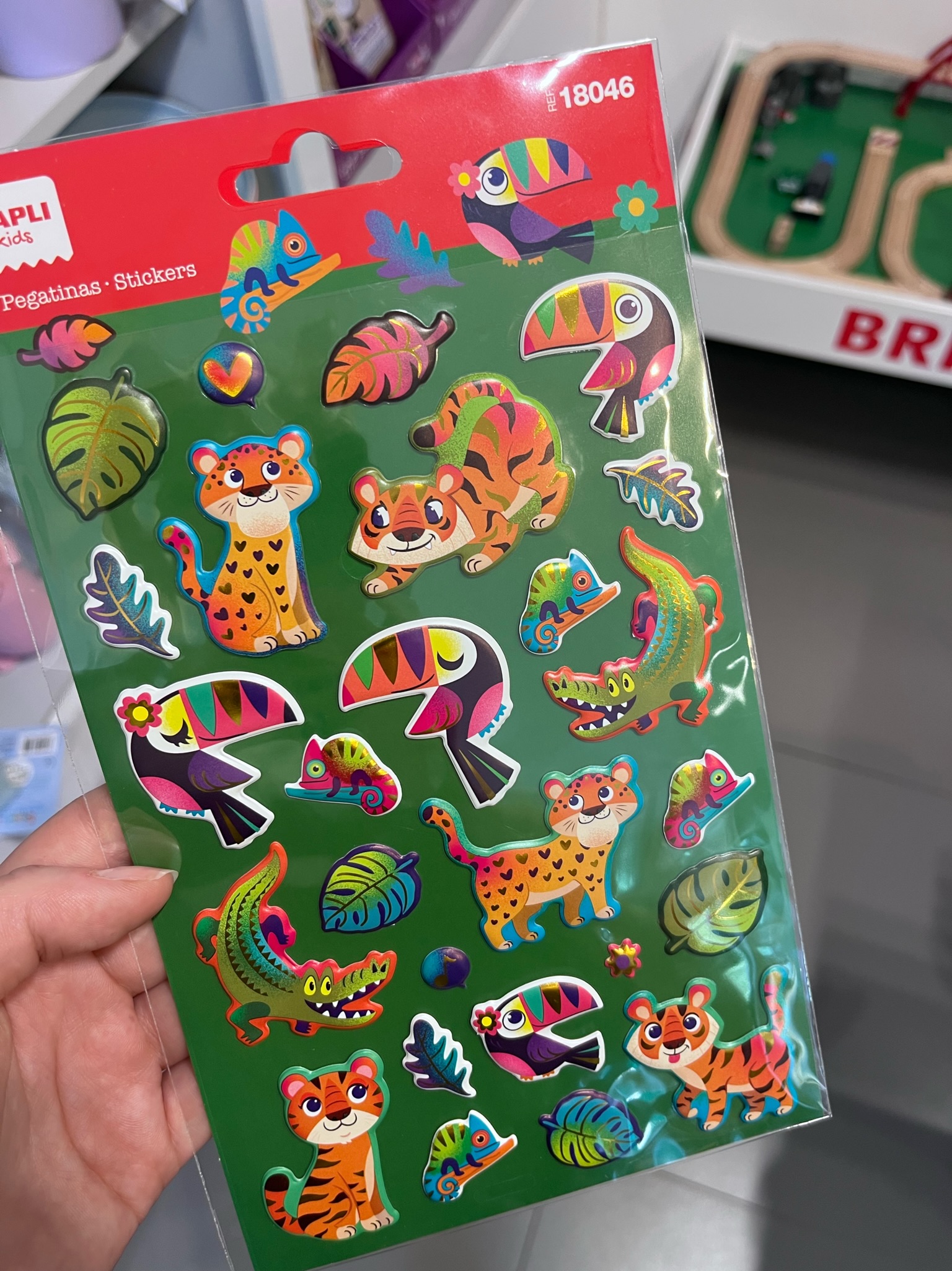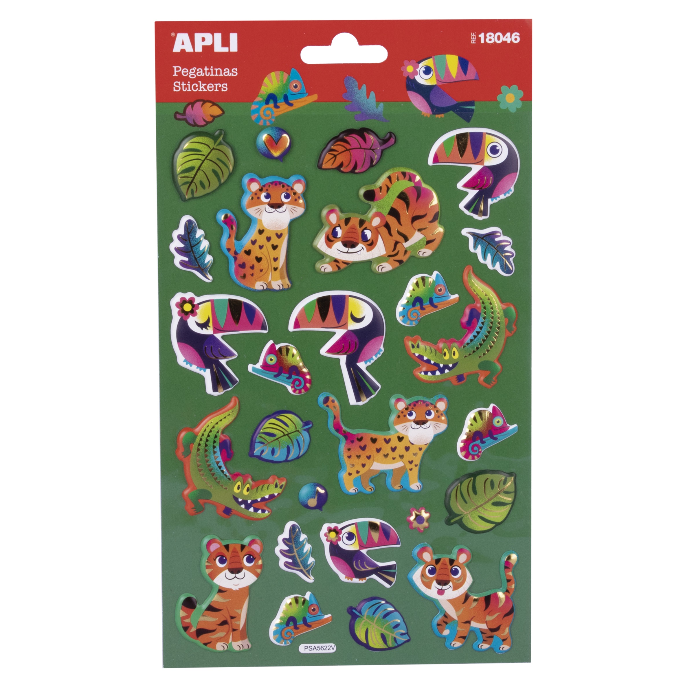 Arkusz metalicznych naklejek marki Apli Kids ucieszy każdego maluszka. Dzieci wprost uwielbiają naklejać! Zestaw składa się z 26 wypukłych oraz permanentnych naklejek z motywem dżungli i metalicznym wykończeniem. Można nimi ozdobić szkolny zeszyt, prace plastyczną, album ze zdjęciami, laurkę, zaproszenie na urodziny, itp. Podczas zabawy dziecko rozwinie kreatywność, wyobraźnię, koordynację ręka-oko, zdolności narracyjne.