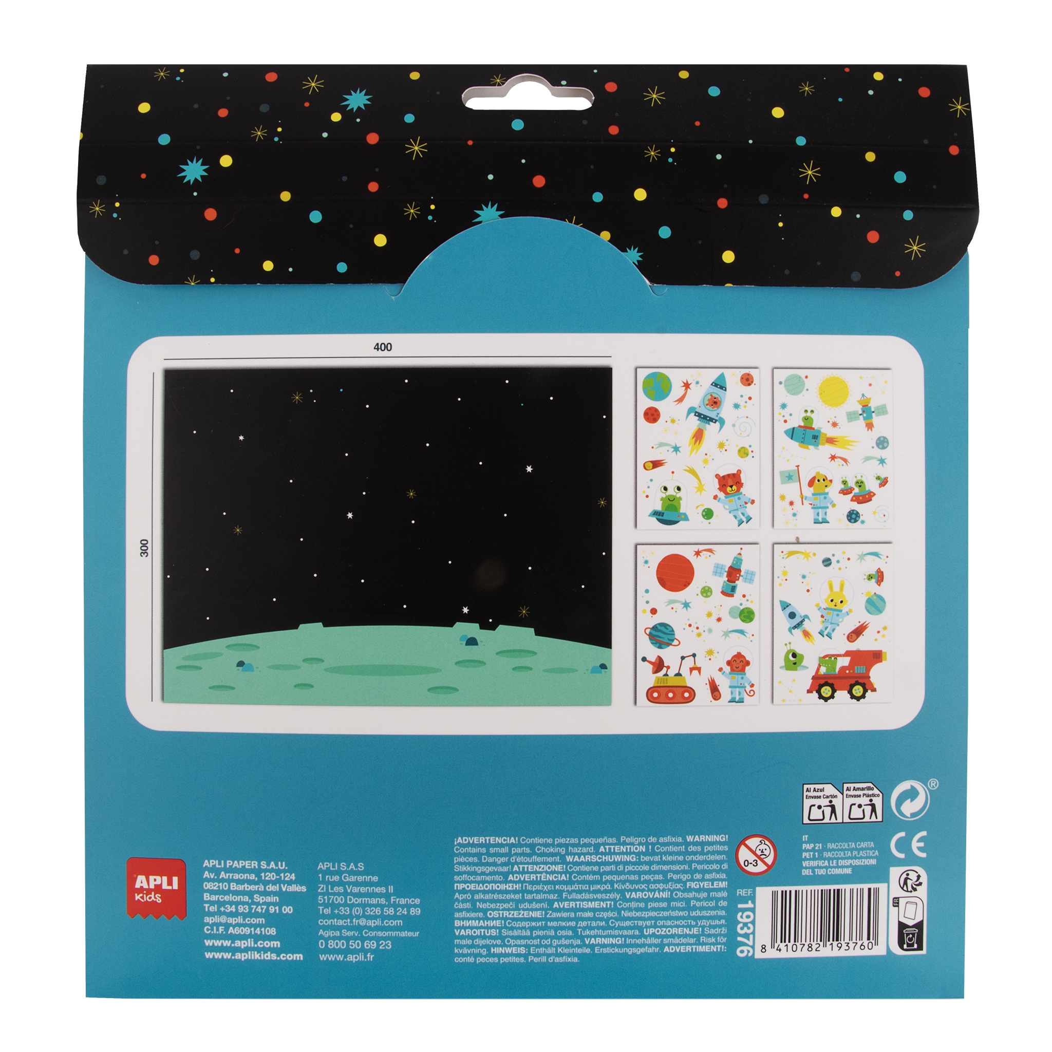 Naklejki wielokrotnego użytku z planszą Apli Kids w wersji: Kosmos