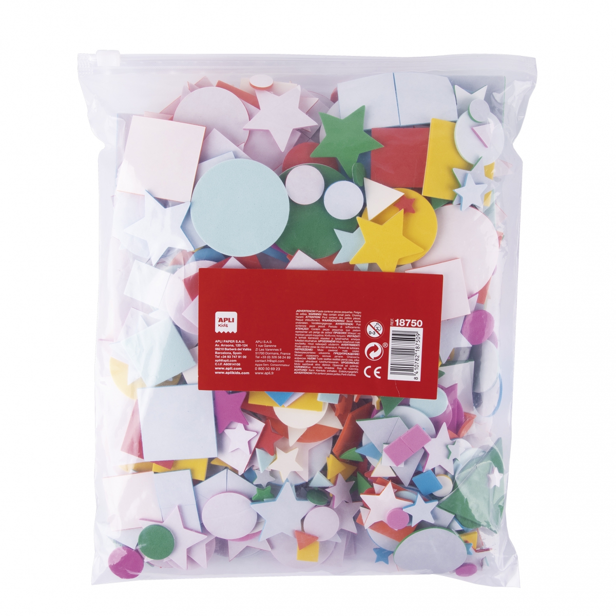 Poszukujesz kolorowych kształtów, które posłużą do dekoracji lub rękodzieła? Oto idealne rozwiązanie dla Ciebie! Opakowanie zawiera 500 naklejek w 4 różnych wzorach - gwiazda, kwadrat, koło, trójkąt - wykonanych z miękkiej pianki EVA. Elementy są w różnych wymiarach, od 1,2 cm do 5 cm, dzięki czemu można tworzyć ciekawe kompozycje. Produkt idealny dla dzieci, może być używany zarówno w domu, jak i w szkole. Kształty z pianki EVA to odpowiedni materiał do albumów, kartek okolicznościowych i innych prac plastycznych.