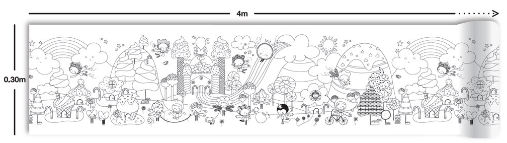 Kolorowanka w rolce Apli Kids ma aż 4 metry długości. Przyklej ją do ściany, podłogi lub stołu w kuchni i ciesz się wspólną zabawą! Kolorowankę możesz wielokrotnie odklejać i przyklejać, nie pozostawia śladów na ścianie. Sama kolorowanka po pomalowaniu nie jest wielorazowa. Naklejka ścienna to świetny sposób na udekorowanie pokoju dziecięcego a kolorowanie to jedna z ulubionych czynności dzieci. Kolorowanie ćwiczy zdolności motoryczne oraz koncentrację, rozwija kreatywność.