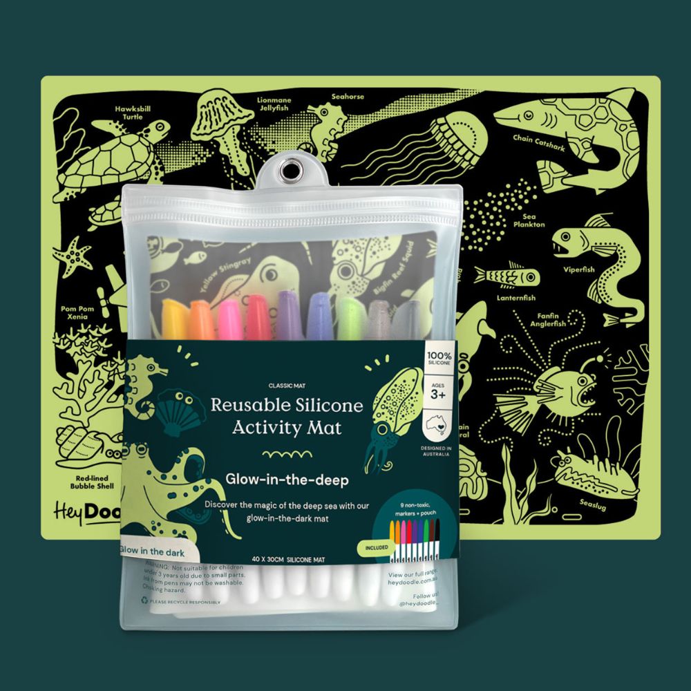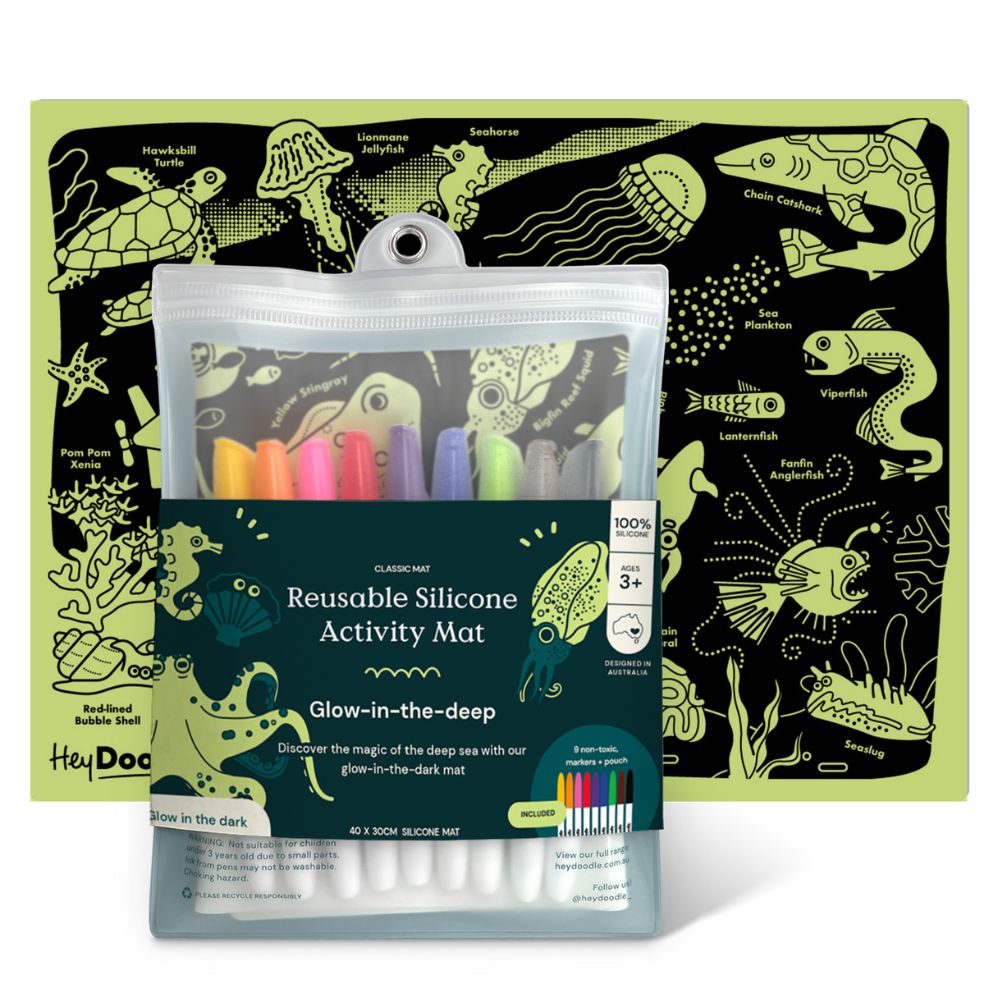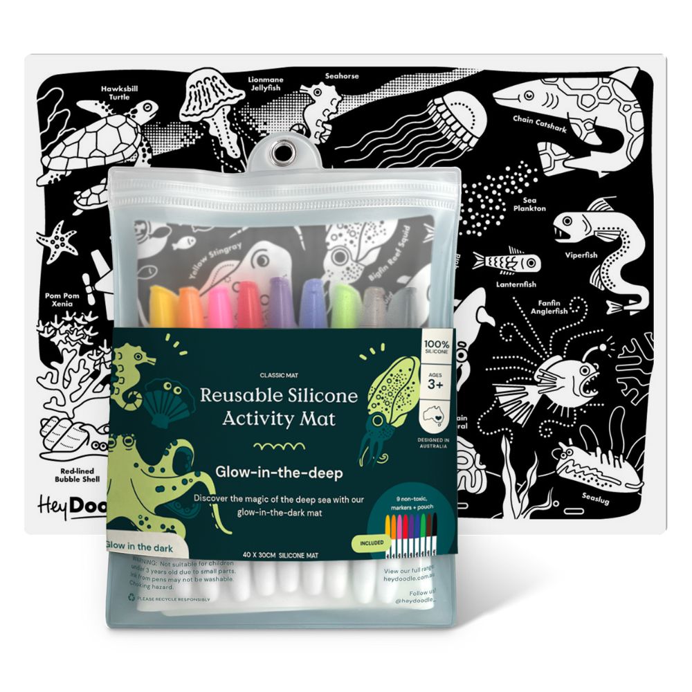 Cechy Świecącej w ciemności dużej maty silikonowej do kolorowania HeyDoodle - Morskie Głębiny: