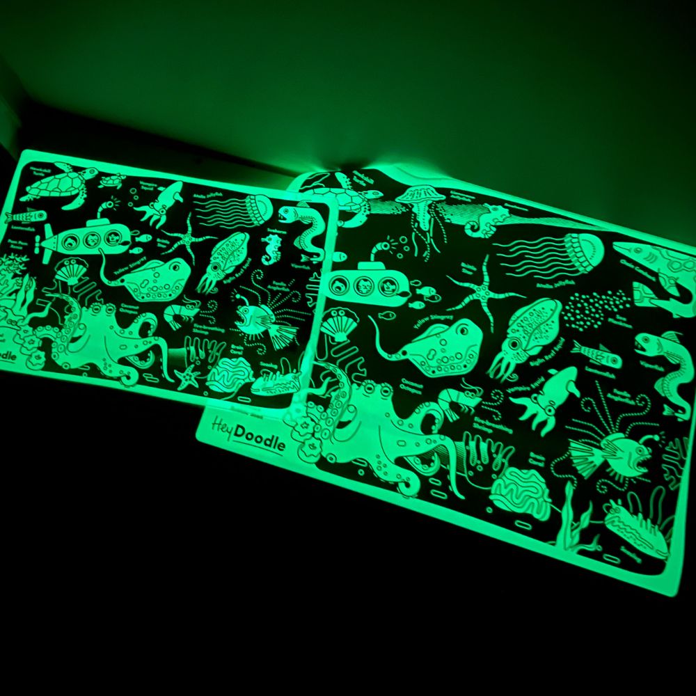 Świecąca w ciemności duża mata silikonowa do kolorowania HeyDoodle w wersji: Morskie Głębiny