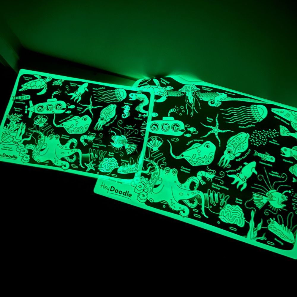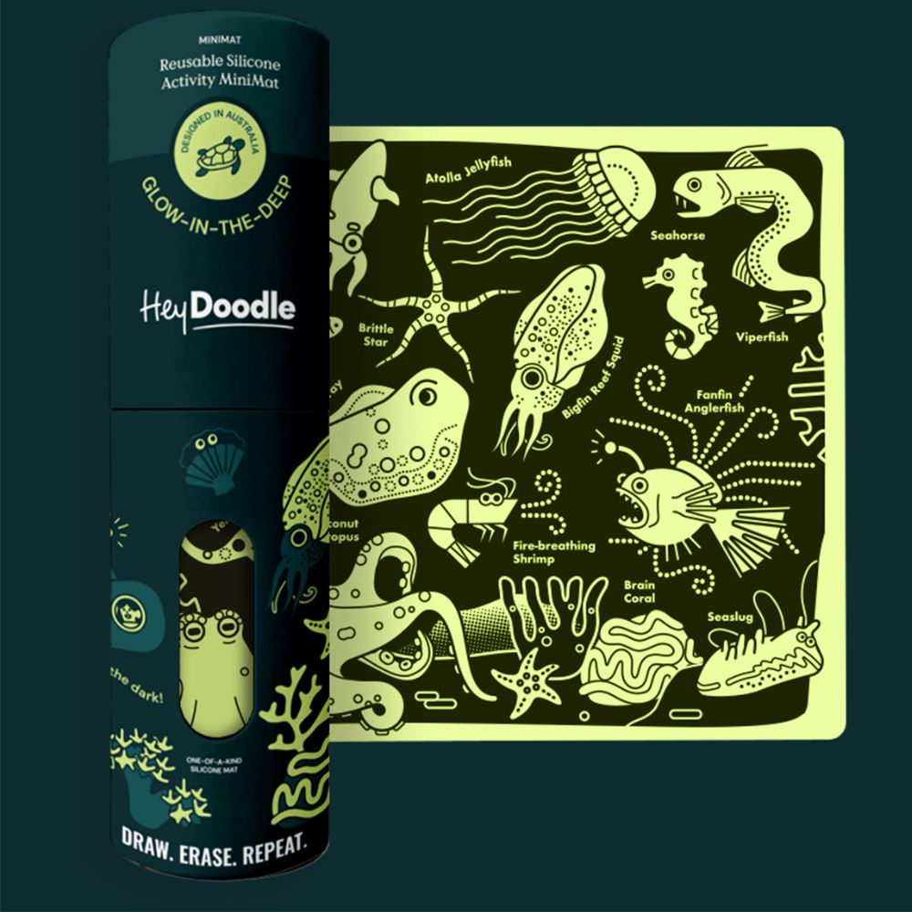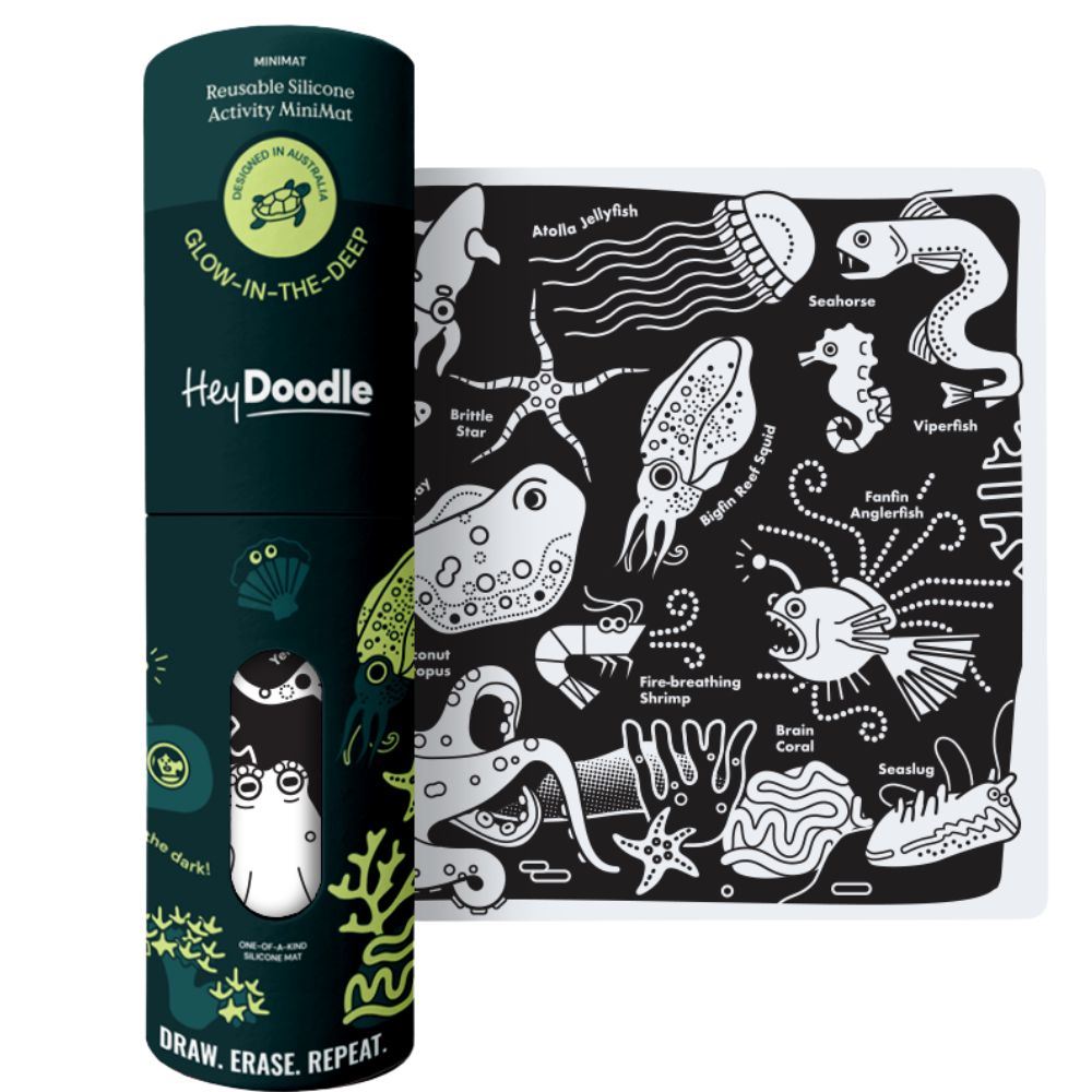Świecąca w ciemności mała mata silikonowa do kolorowania HeyDoodle w wersji: Morskie Głębiny