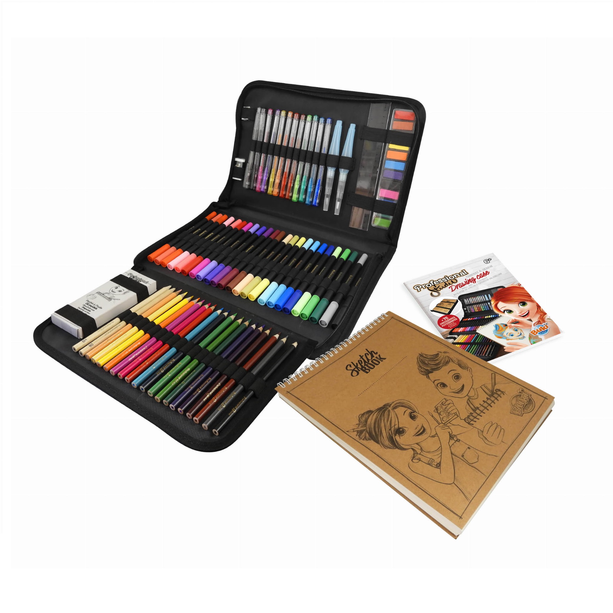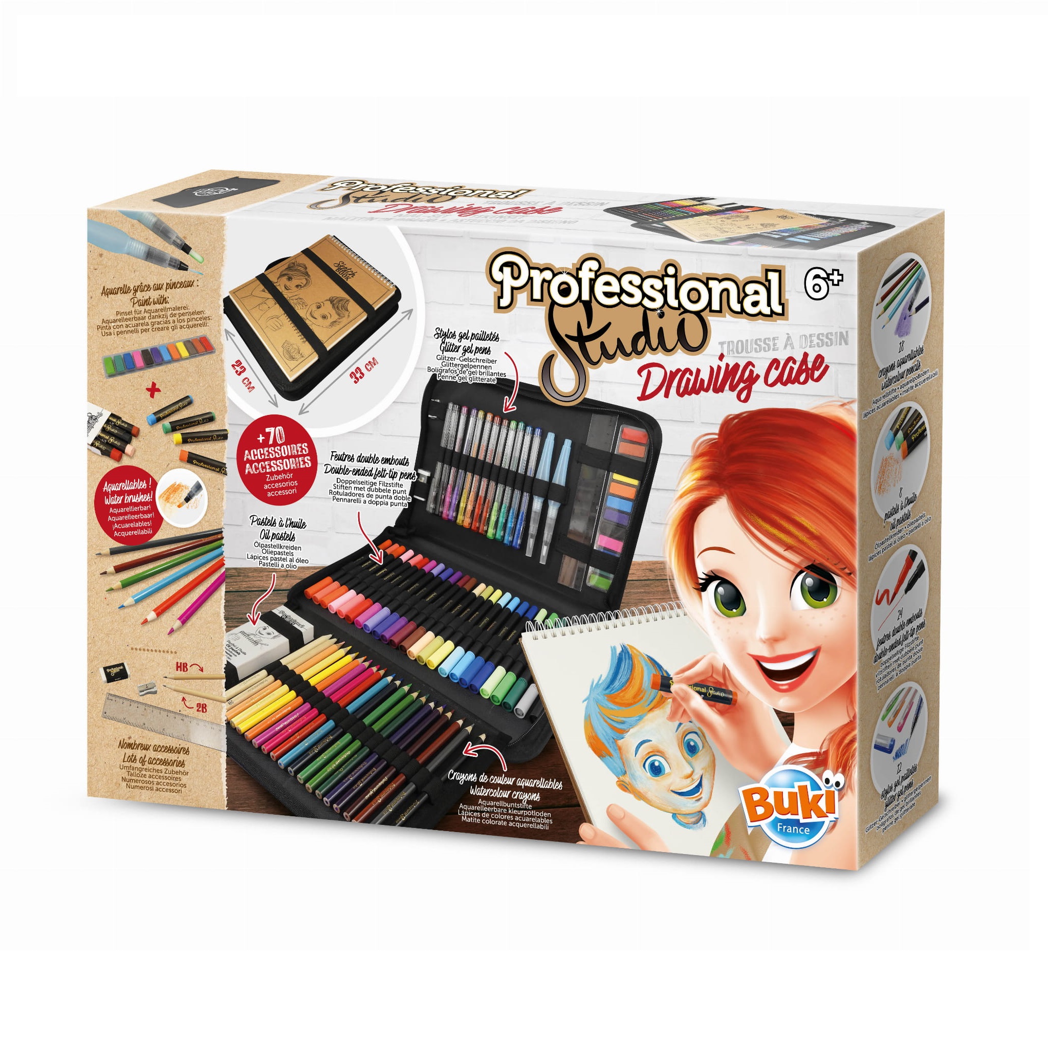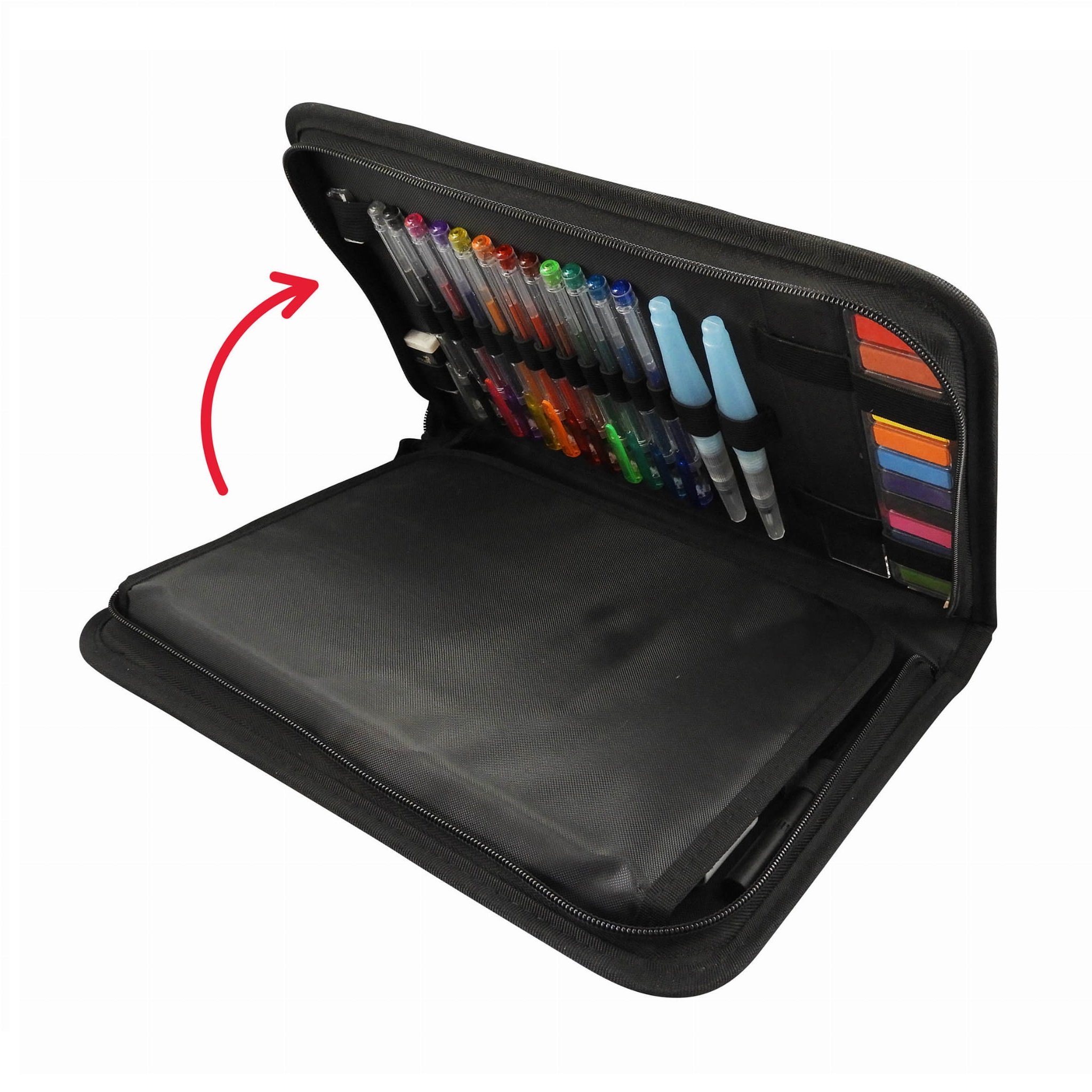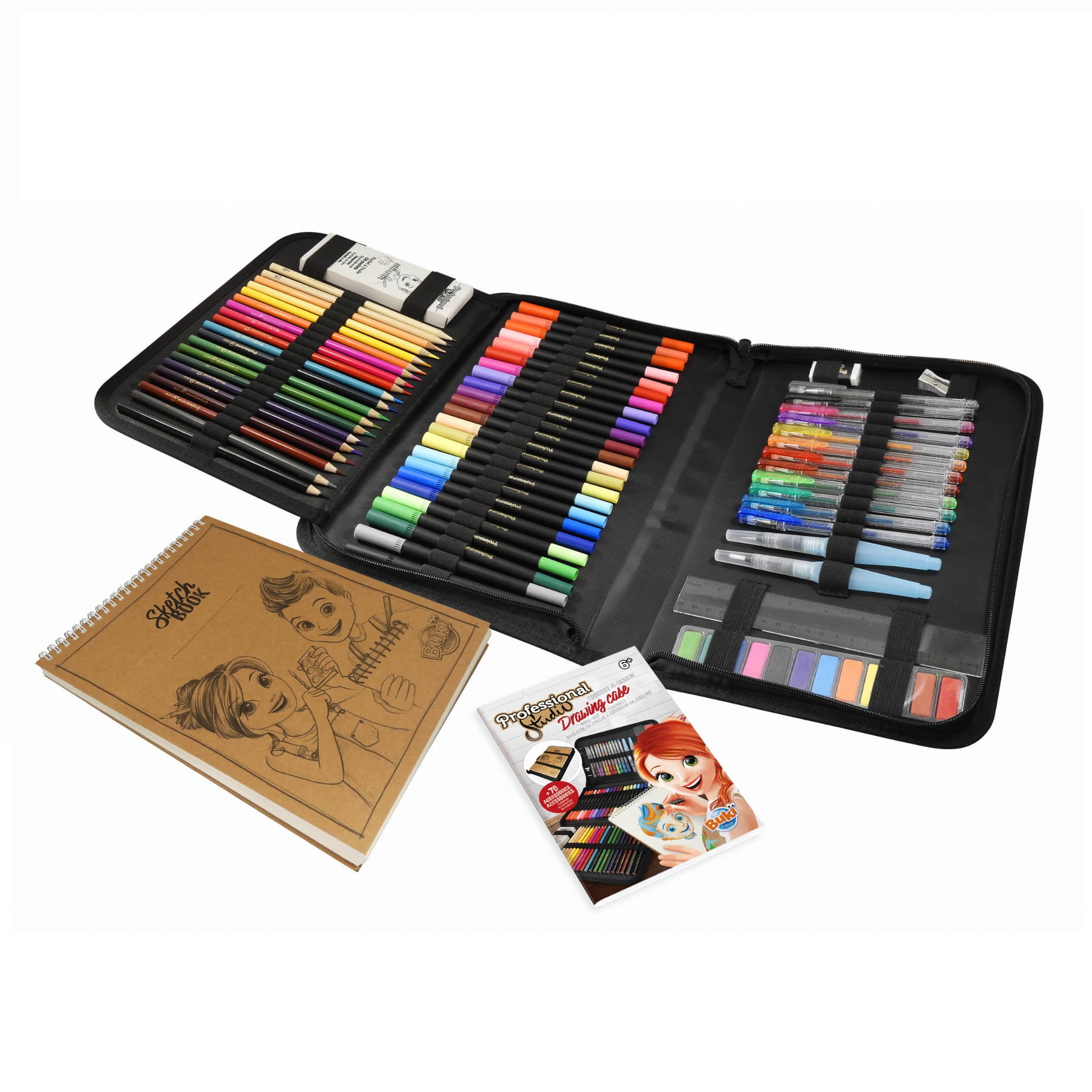 Bogato wyposażona teczka z akcesoriami plastycznymi i szkicownikiem pozwoli rozwinąć kreatywność małego artysty. Ponad 70 różnych narzędzi, które pozwolą stworzyć niepowtarzalne dzieła w szkicowniku na spirali dołączonym do zestawu. Wszystkie materiały: pastele, farbki, kredki i inne mieszczą się w teczce w formie piórnika. Teczka zamykana jest na zamek i posiada uchwyt do noszenia. Każdą kredkę lub mazak wkłada się do wyznaczonych miejsc. Szkicownik wsuwa się z przodu teczki pod elastyczne gumki, zapobiegające jego wypadnięciu. Dzięki tym zabezpieczeniom teczkę można zabrać ze sobą wszędzie oraz jest łatwa do przechowywania.