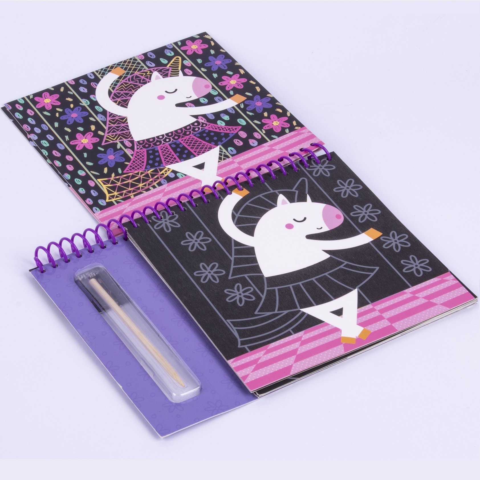Zestaw wydrapywanek to doskonały sposób na prostą i przyjemną rozrywkę! Wystarczy użyć drewnianego rysika, by zdrapać czarną warstwę i odkryć piękne kolory, które kryją się pod nią. W zestawie znajdziesz 8 stron do z zaznaczonymi konturami, do każdej z jest przykładowa ilustrację, która pomoże Ci w tworzeniu dzieła.