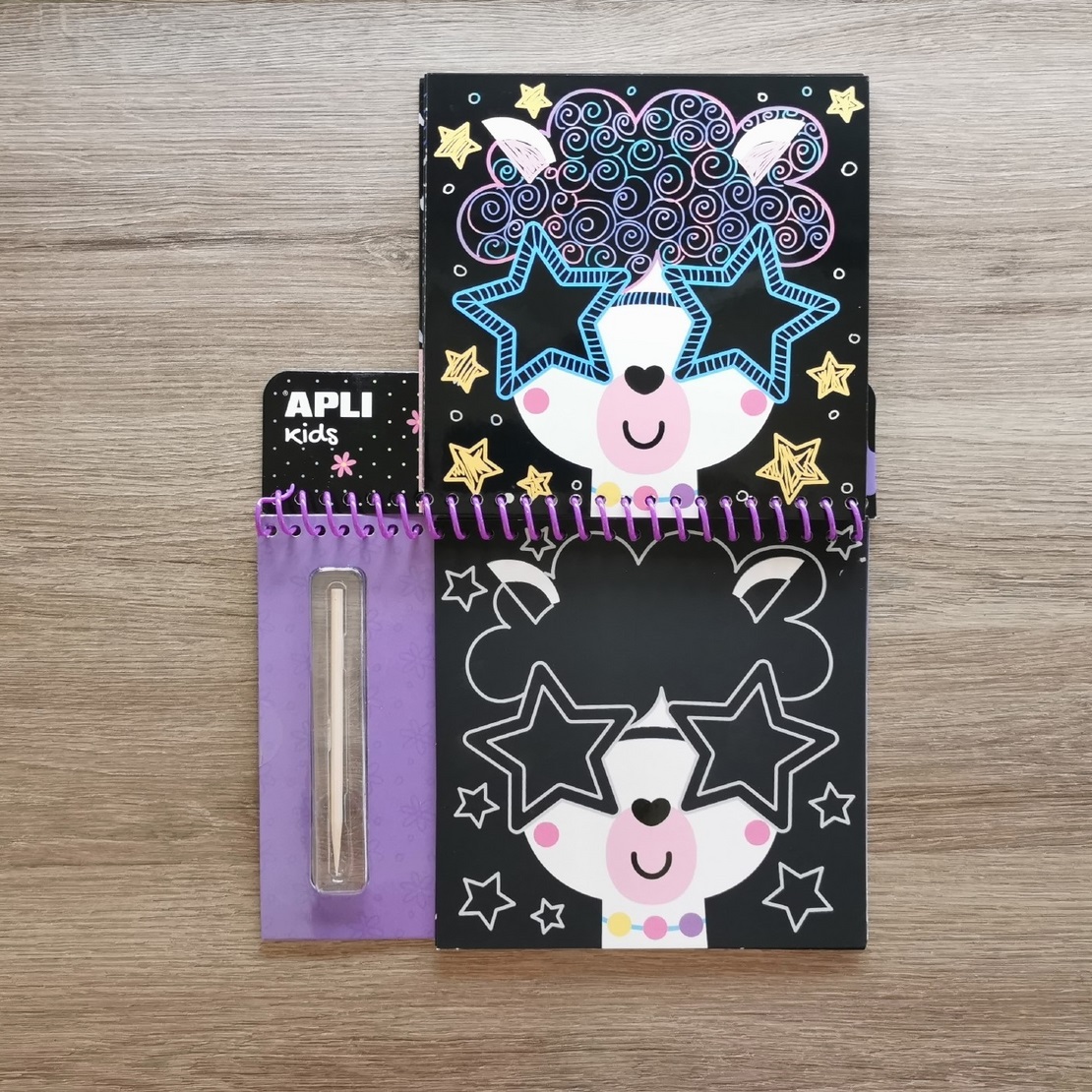 Podczas zabawy, dziecko rozwija swoje zdolności grafomotoryczne, ćwiczy kreatywność i rozbudza wyobraźnię. Dzięki swojemu niewielkiemu rozmiarowi, zestaw wydrapywanek jest idealny do zabrania w podróż. Dołącz do Apli i ciesz się kreatywnością z naszymi wydrapywanymi!