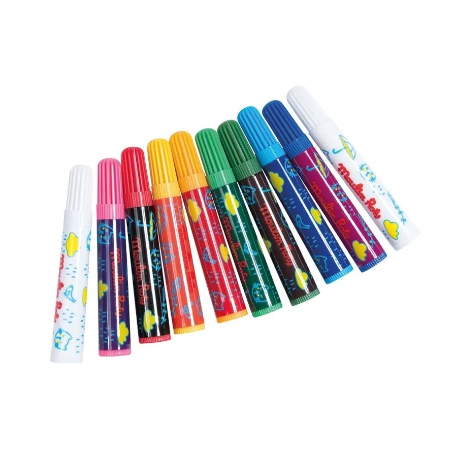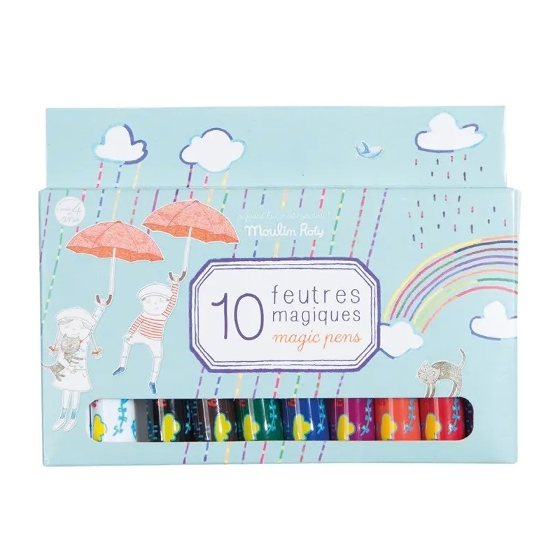 Zestaw 10 niesamowitych flamastrów, w tym 8 w intensywnych kolorach oraz 2 białe, magiczne flamastry, które dodają wyjątkowego efektu. Wystarczy, że pomalujesz rysunek kolorowym flamastrem, a następnie użyjesz białego, by stworzyć kropki, kwiatki lub dowolne wzory, które w magiczny sposób zmienią kolor!