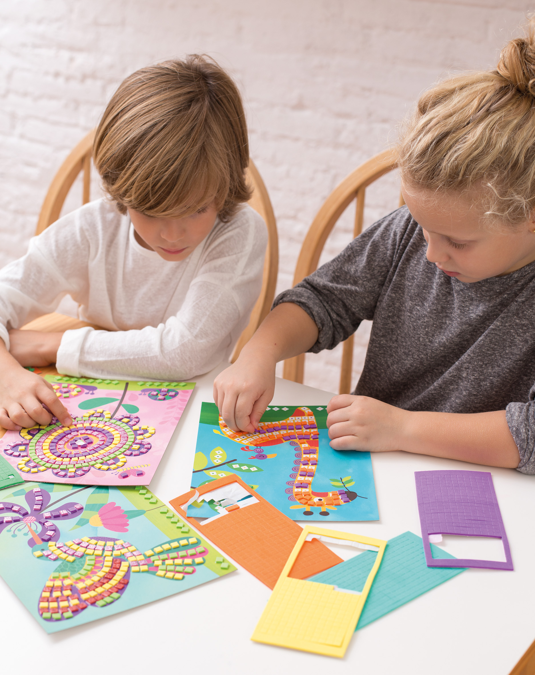 Zestaw artystyczny Apli Kids Mozaika idealnie rozwija małą motorykę u dzieci. Przy okazji świetnej zabawy, maluchy ćwiczą precyzję i cierpliwość. Zabawa polega na uzupełnieniu rysunków kolorowymi elementami z pianki EVA. W zestawie znajdziecie 4 arkusze do wyklejenia, 7 kart z naklejkami oraz szablon.
