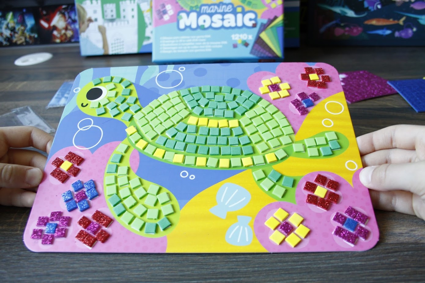 Ładnie zapakowany zestaw mozaiek, sprawdził się jako prezent.