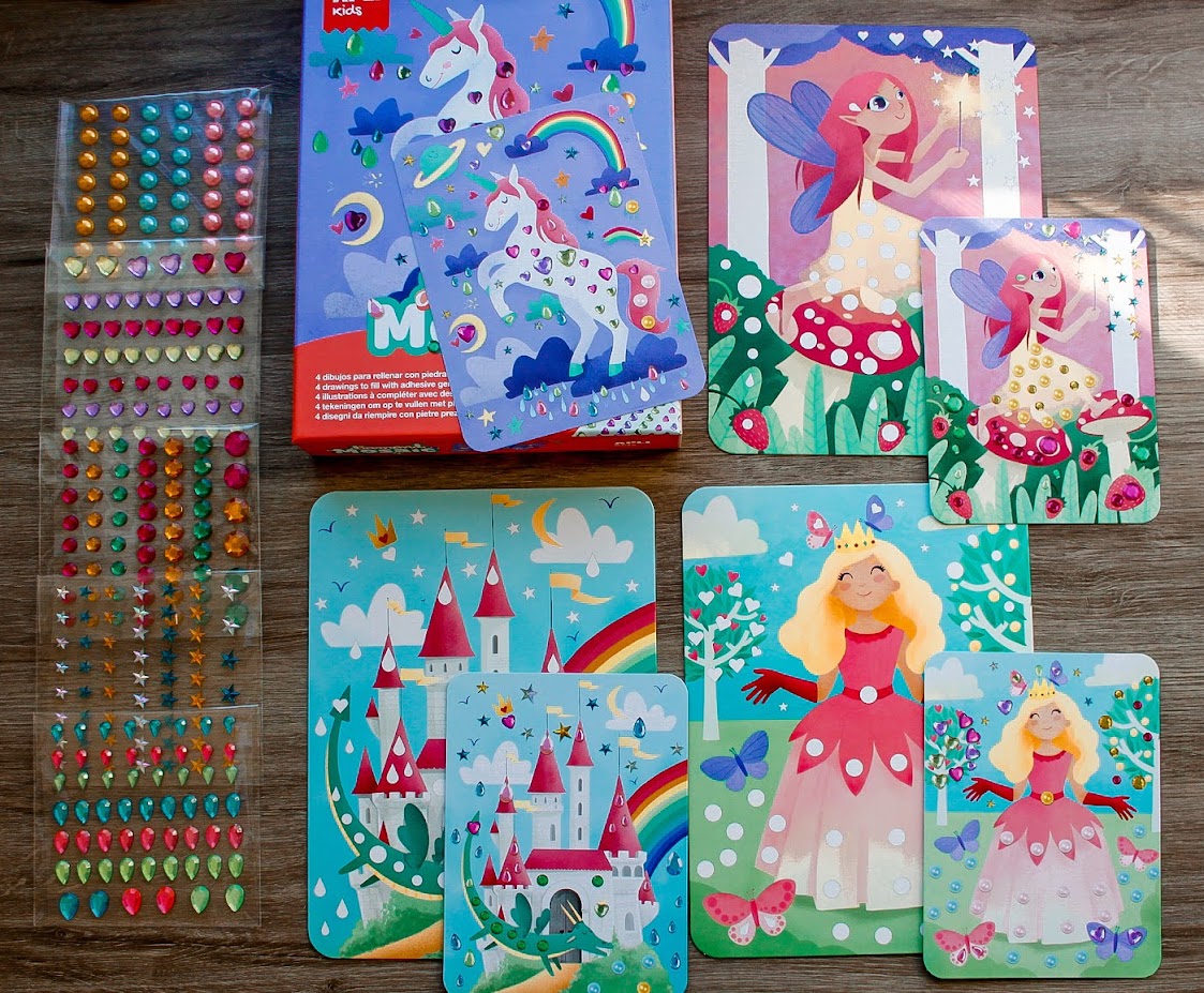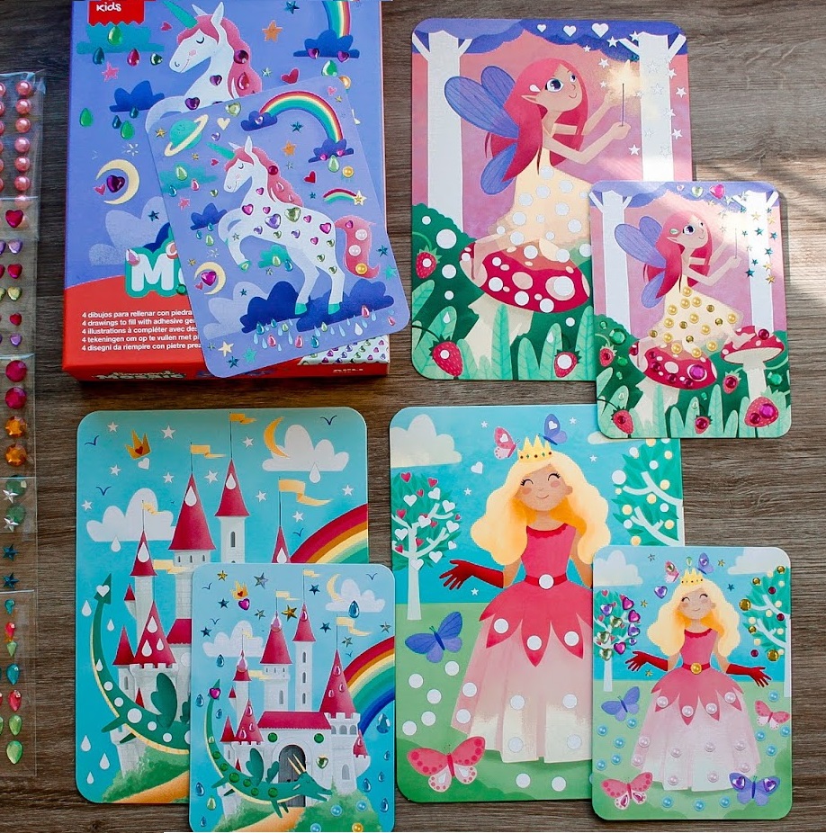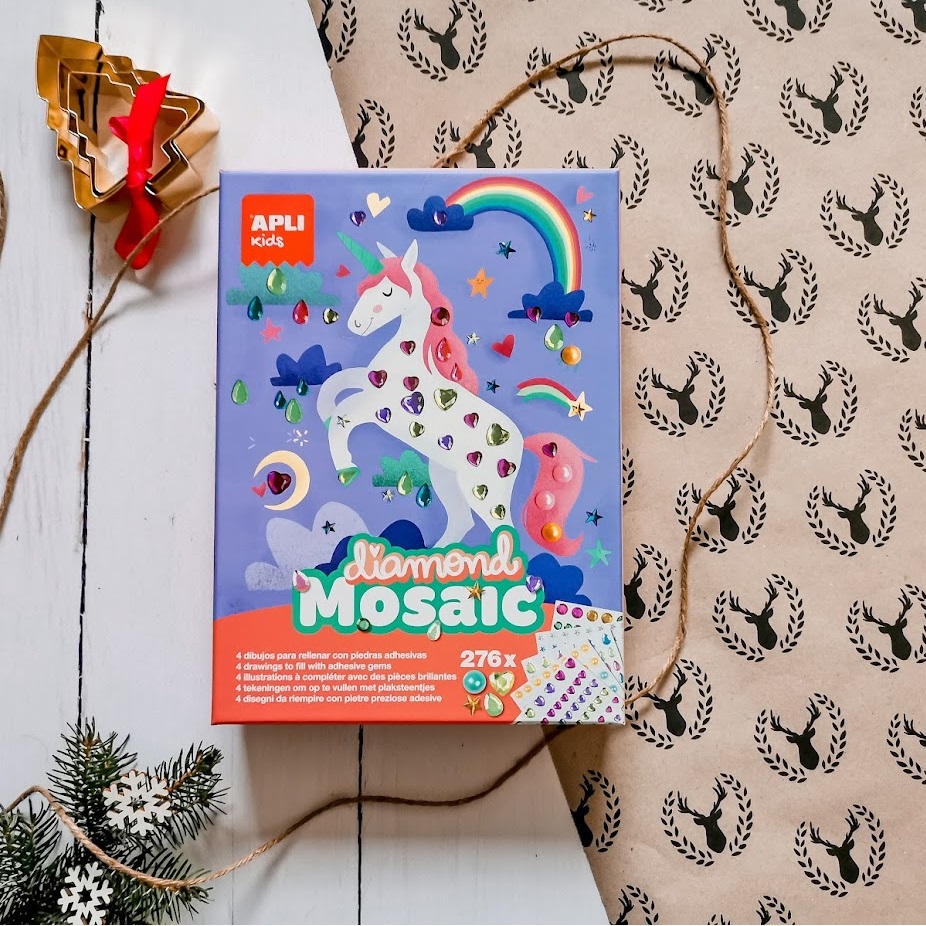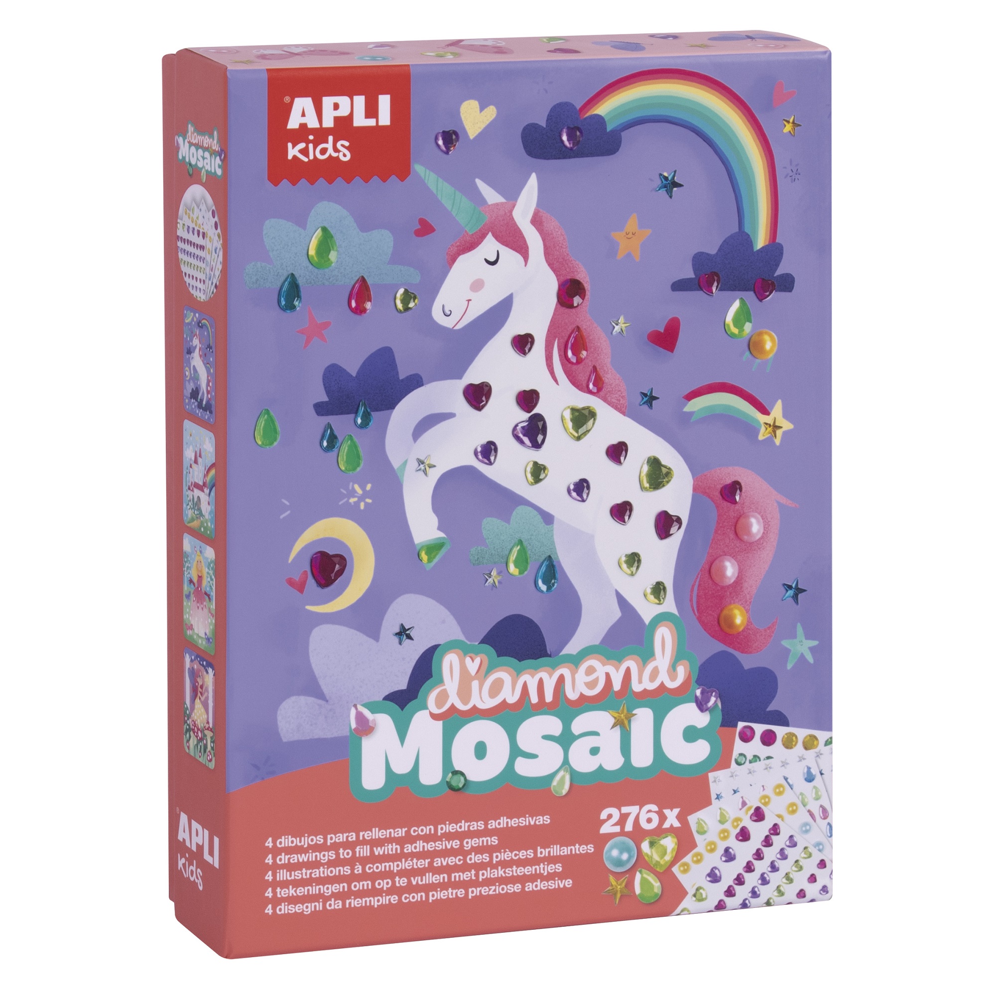 Jeden z najpopularniejszych zestawów Apli Kids to diamentowa mozaika, która zachwyci każdą małą księżniczkę. W zestawie znajduje się 4 arkusze z bajkowymi motywami i aż 276 kolorowych diamentów w różnych kształtach. Dziecko ma za zadanie ozdobić arkusze za pomocą kryształków, dopasowując odpowiedni kształt do obrazka. Może także wybrać kolor diamentów spośród kilku dostępnych. Po ukończeniu dzieło może być piękną ozdobą np. na ścianie. Zestaw diamentowej mozaiki to idealny prezent dla każdej małej artystki.