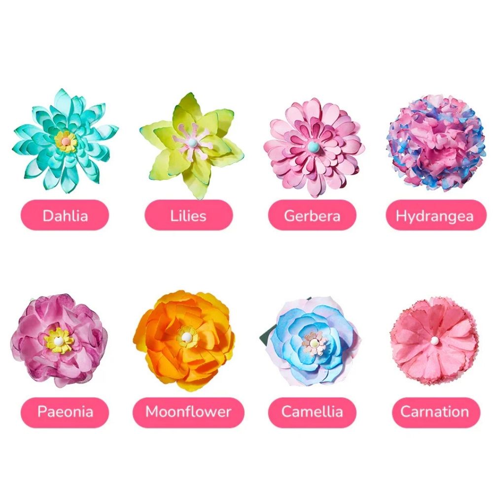 Dzieci składają bibułowe szablony kwiatów, nasączają je tuszami i komponują własne bukiety w dołączonym papierowym wazonie. Dzięki dwóm różnym technikom barwienia każdy kwiat wygląda inaczej, a efekt „rosnących i kwitnących” roślin potrafi zachwycić zarówno dzieci, jak i dorosłych.