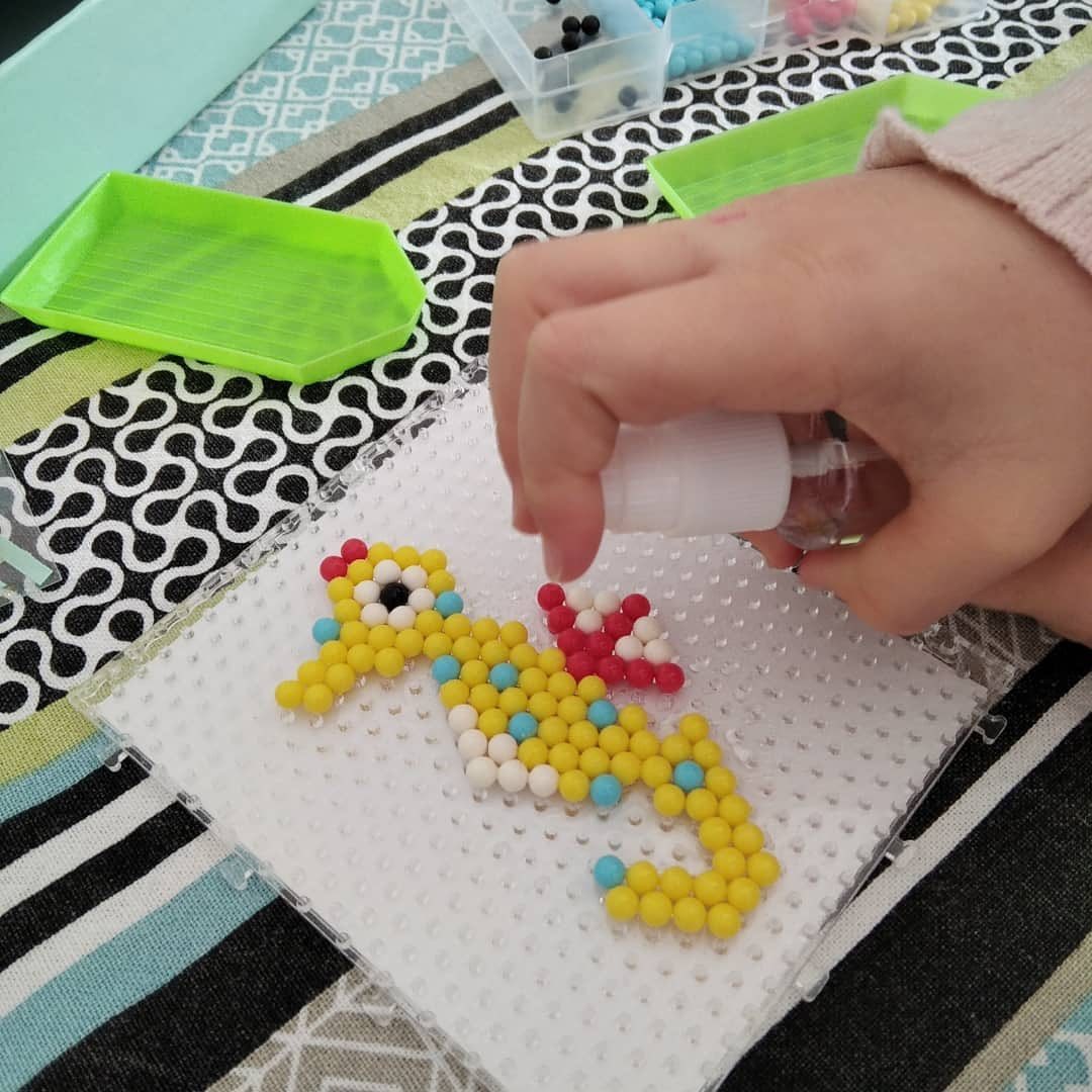Płytka o strukturze plastra miodu utrzymuje koraliki na miejscu podczas tworzenia ozdób, które można układać wg. wzoru z zestawu lub według własnego uznania.