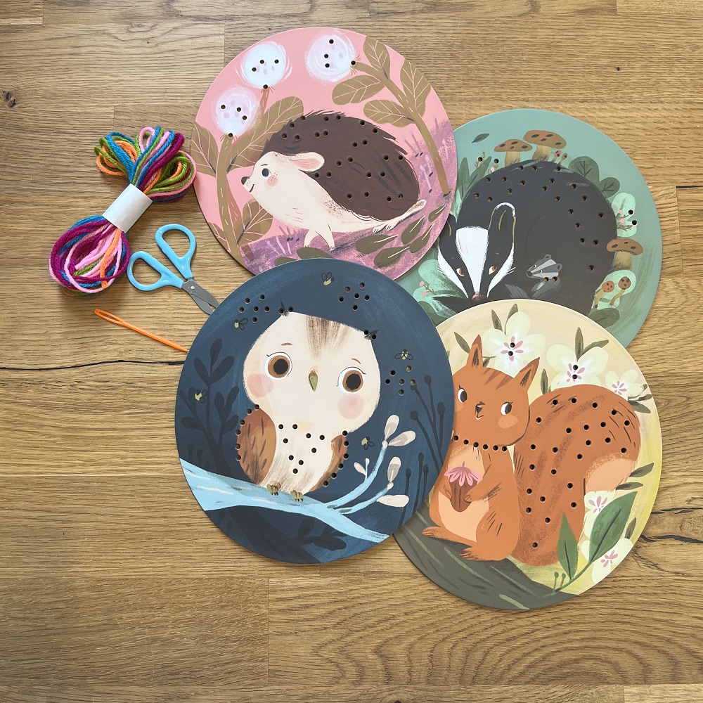 Pięknie ilustrowany zestaw do nauki podstaw haftowania. Naucz się 2 różnych, ale bardzo prostych ściegów. Karty z obrazkami posiadają ilustracje leśnych zwierzątek - wiewiórki, sowy, jeża oraz borsuka.