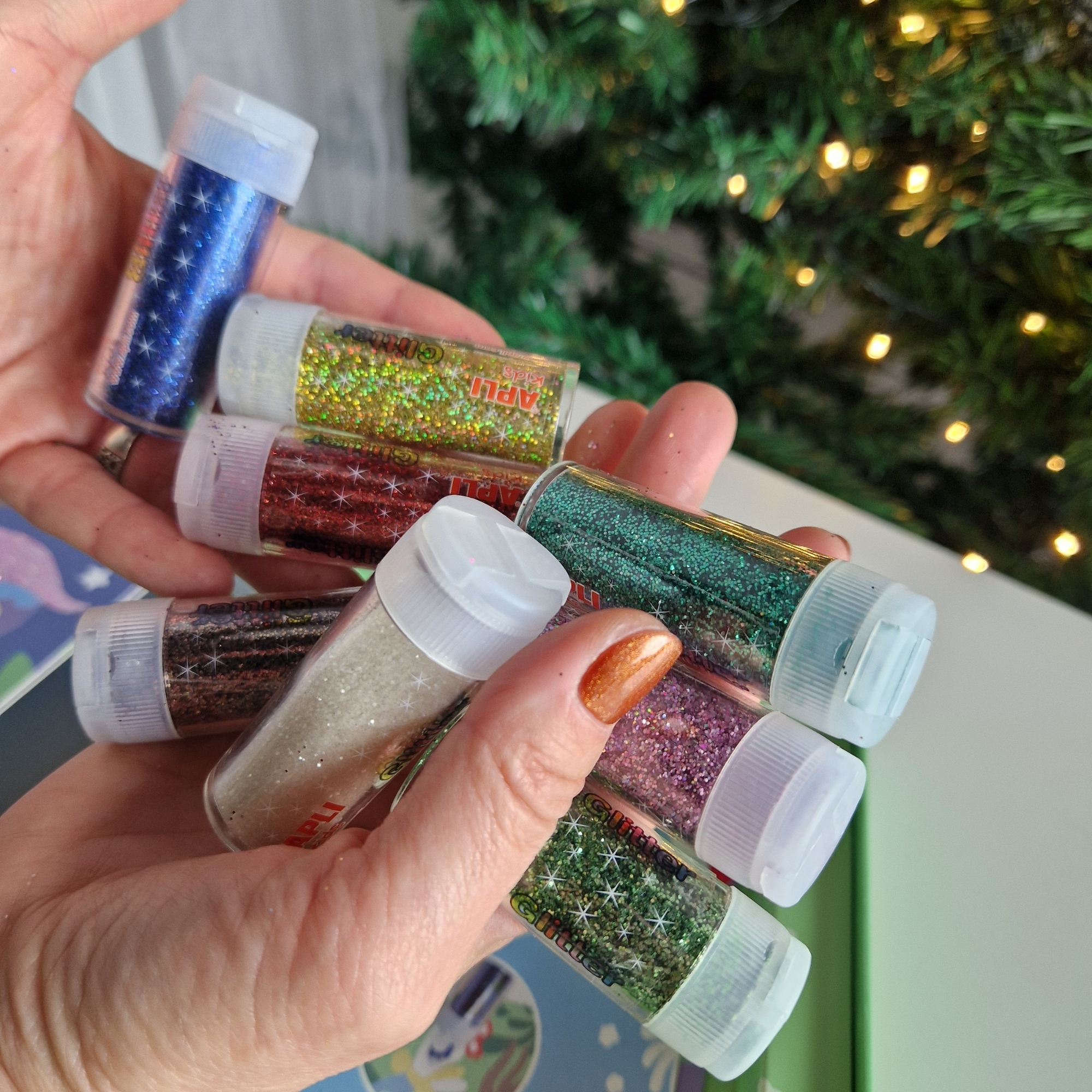 Za tą cenę szczerze mówiąc nie spodziewałam się zbyt wiele...jak bardzo się myliłam! Zestaw Apli Kids jest naprawdę doskonałej jakości! Duże fiolki z brokatem, który świetnie się przykleja do kartek dołączonych do zestawu.