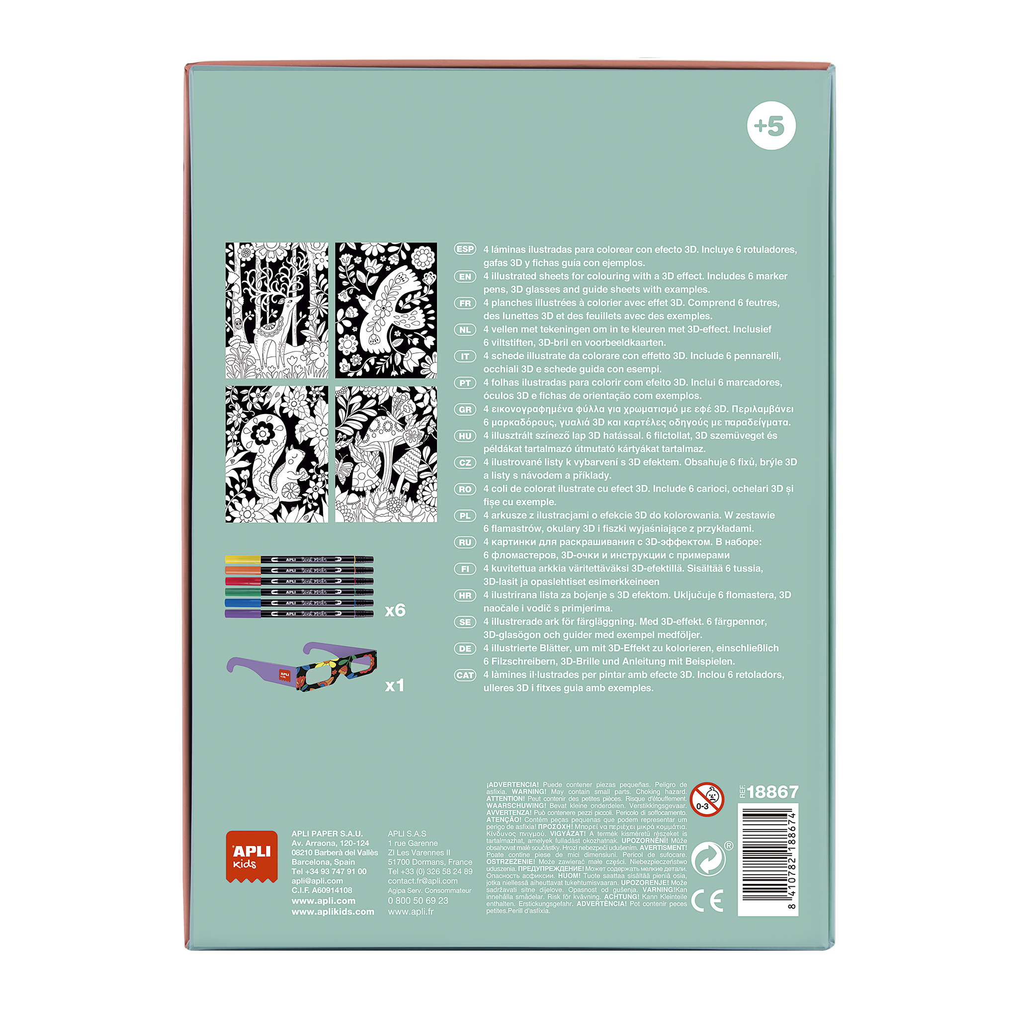 Cechy zestawu artystycznego z okularami Apli Kids - Kolorowanie 3D: