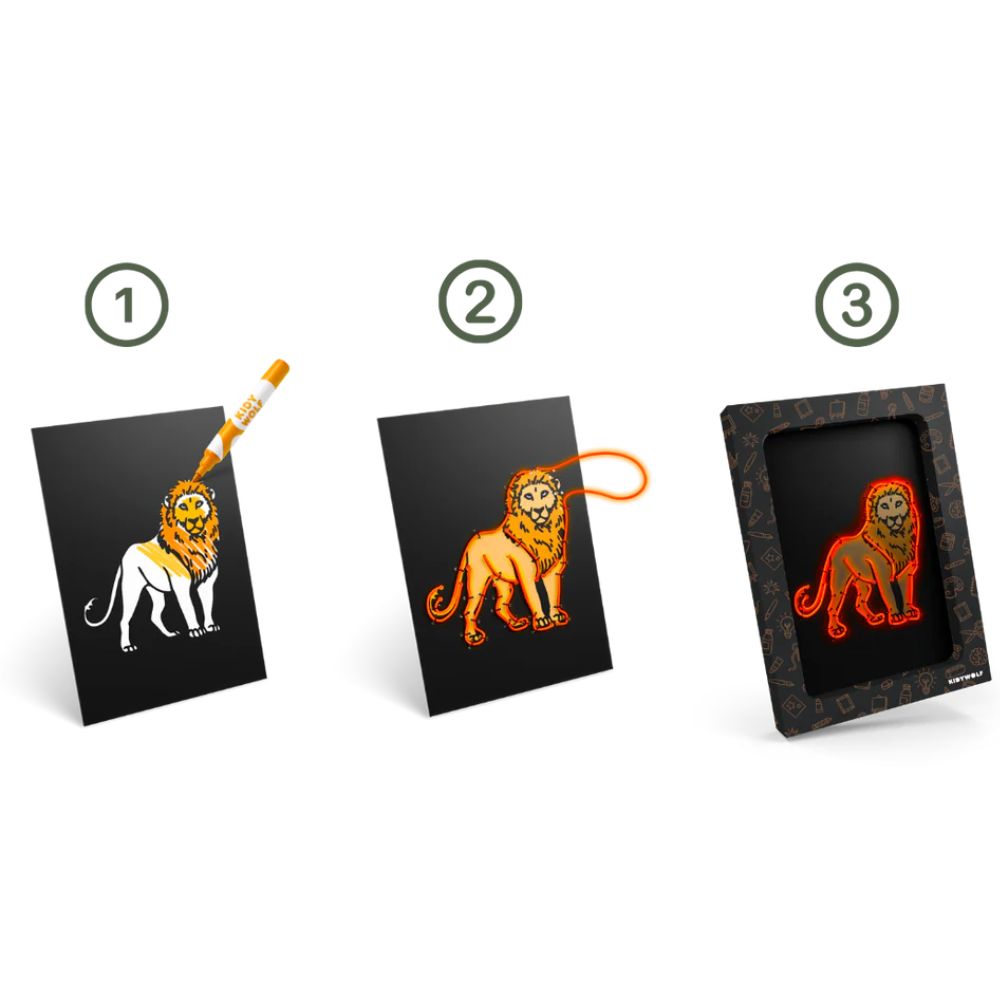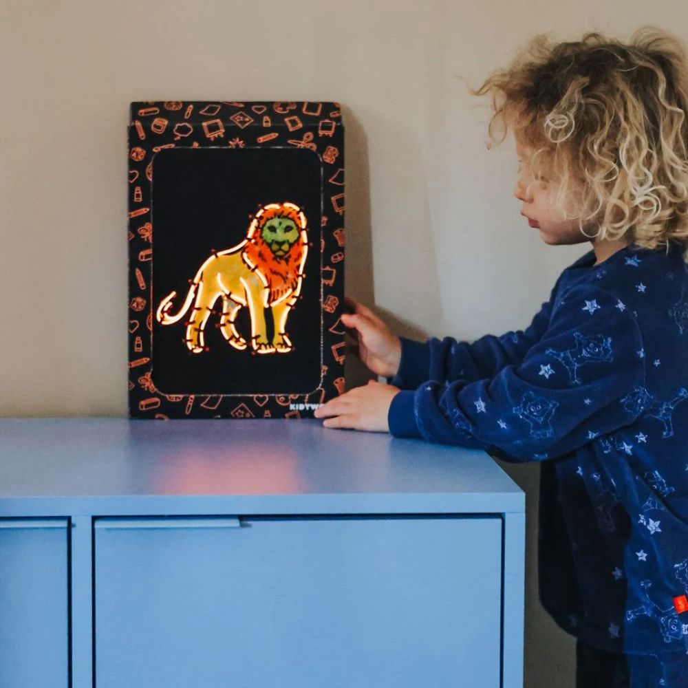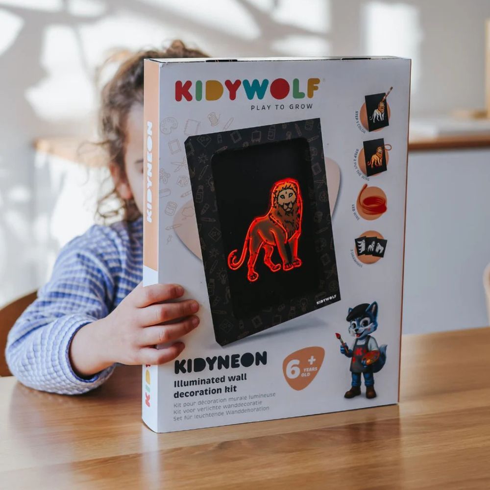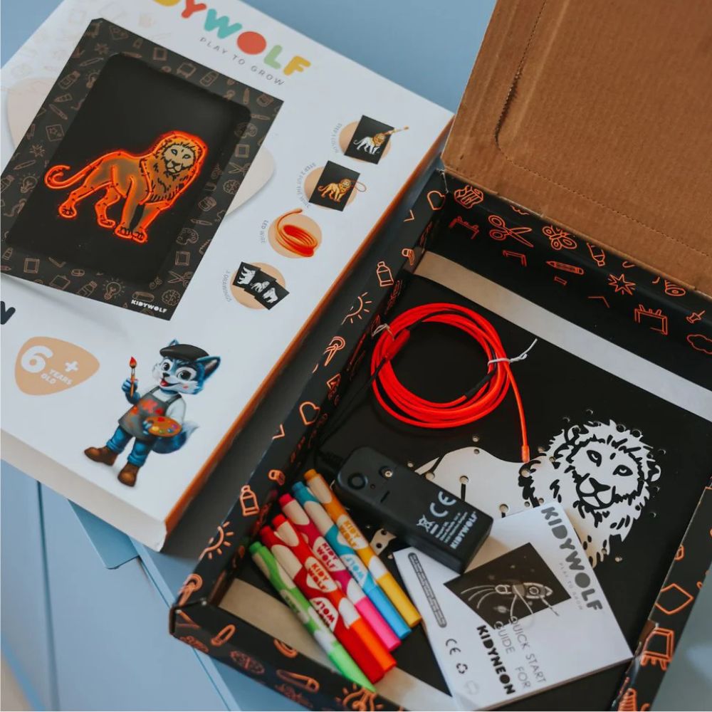 KIDYNEON to wyjątkowy zestaw kreatywny dla dzieci od 6 lat, który łączy plastykę z magicznym efektem światła. Dzięki elastycznym przewodom o efekcie neonu maluch może stworzyć własny, świecący obraz, który po skończeniu pracy stanie się oryginalną dekoracją pokoju.