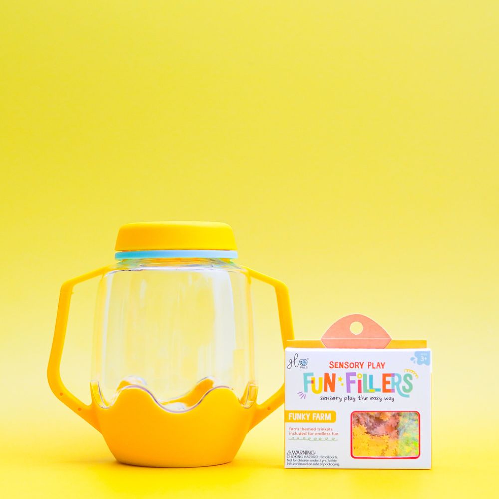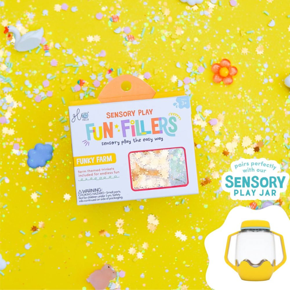 Fun Fillers to prosty, a jednocześnie niezwykle efektowny sposób na to, by zabawa sensoryczna stała się jeszcze bardziej magiczna, kreatywna i pełna odkryć. W każdym zestawie znajdziesz starannie dobrane tematyczne elementy – połyskujące brokaty, urocze figurki, mieniące się cekiny, barwniki i drobinki – które ożywią świecące słoiki Glo Pals i sprawią, że eksplorowanie kolorów, faktur i ruchu dostarczy dziecku jeszcze więcej radości.